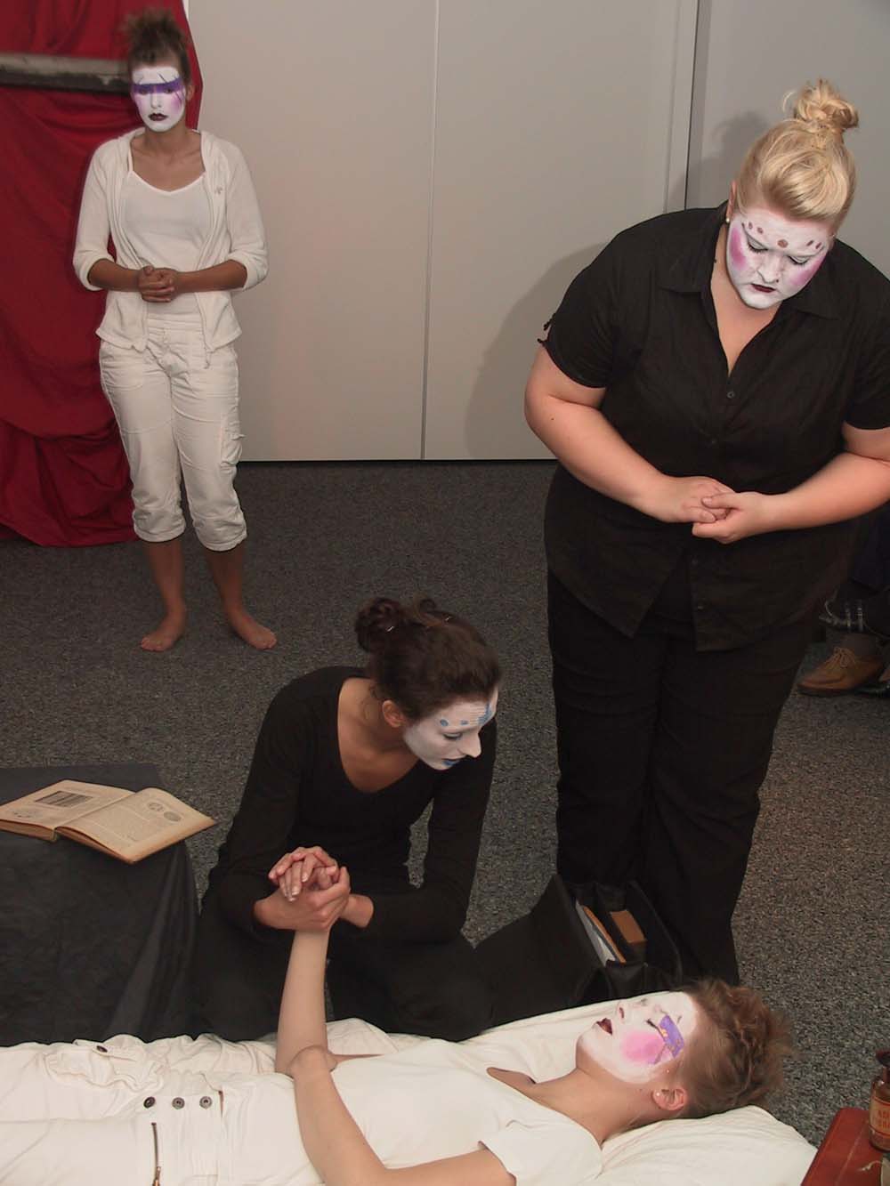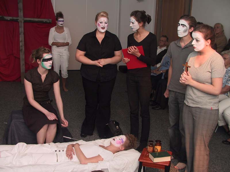 Machtmissbrauch, Aberglauben und Mitläufertum; die beschriebenen gesellschaftlichen Missstände Millers haben ihre traurige Aktualität auch heute nicht verloren. Der Literaturkurs der gymnasialen Oberstufe der Liebfrauenschule Geldern präsentierte „Hexenjagd“ in einer zeitlosen Inszenierung nach Guido Niermann. Die Schauspieler und die Bühnengruppe, die zum Teil schon bei „Die Räuber“ Erfahrungen gesammelt hatten, arbeiteten seit einem dreiviertel Jahr intensiv am Stück und der Umsetzung. Frei nach Arthur Miller wurden die tatsächlichen Ereignisse, die sich im Jahre 1692 in der streng puritanischen Gemeinde Salem abspielten, aktualisiert und in gesellschaftliche Bezüge gebracht.
