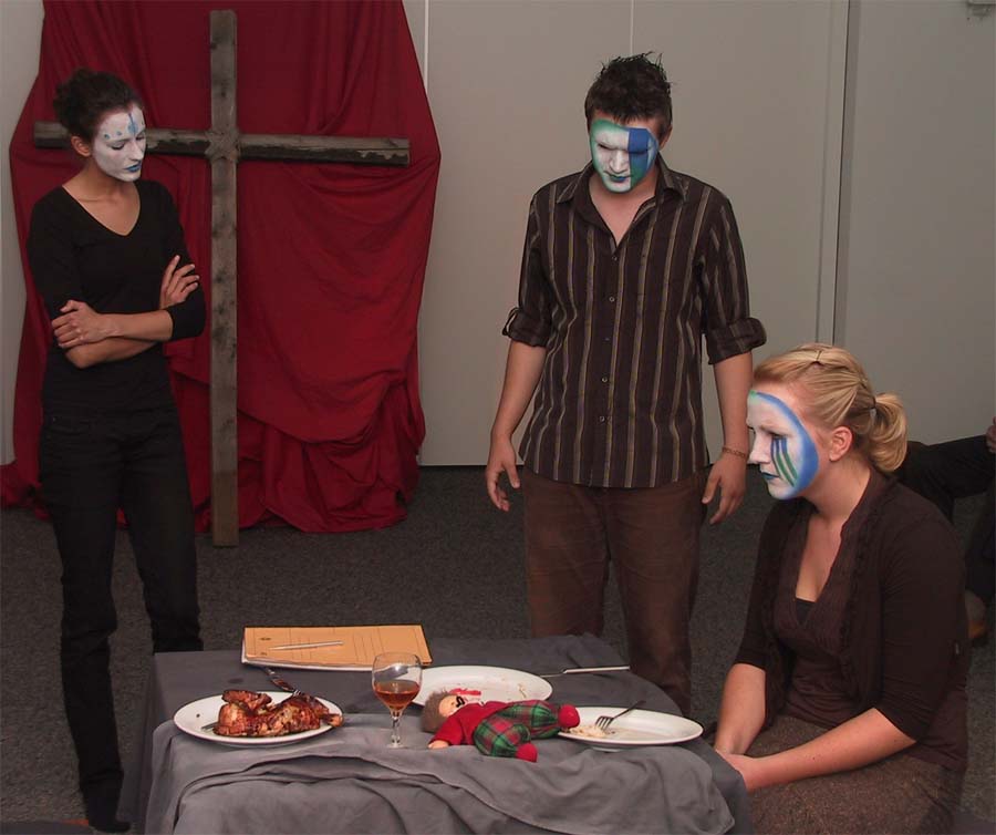 Die Entscheidung dieses Mal nicht in der Aula, sondern im Konferenzraum zu spielen, erhöhte die Wirkung des Stückes. Die nüchterne, fast klinische Atmosphäre passte zu der einschüchternden Gerichtbarkeit. Die vielen Zuschauer bei den vier ausverkauften Aufführungen waren jedenfalls begeistert.