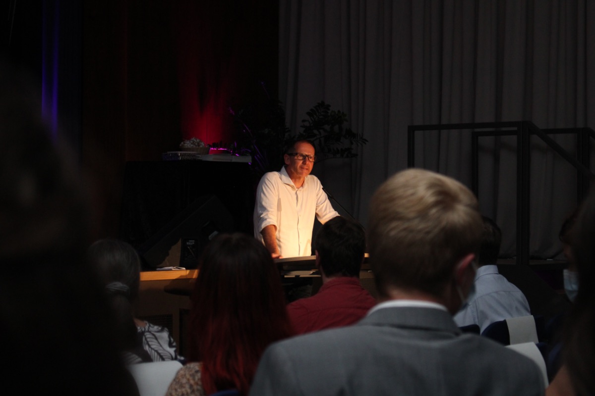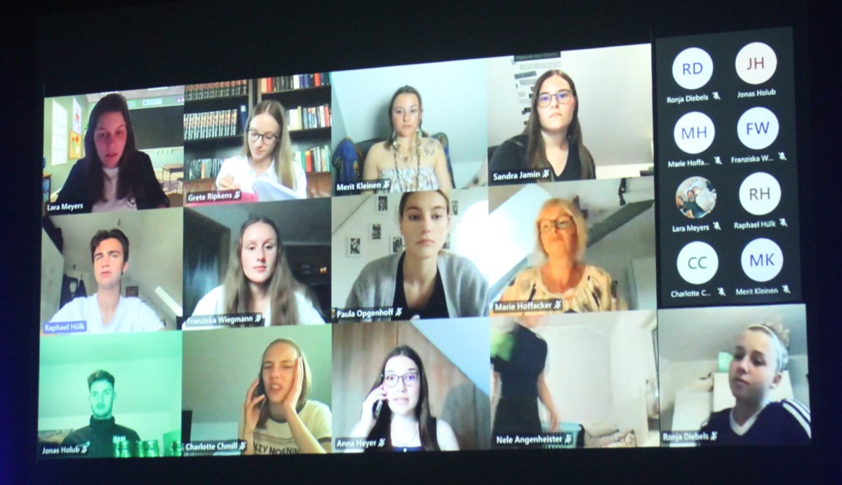 Mehr als humorvoll karikierten auch Schülerinnen und Schüler den Unterricht in Coronazeiten: mit einer Videokonferenz als Filmbeitrag – montags morgens zu sehr früher Stunde. Die ersten Lacher waren in der Aula damit vorprogrammiert und verliehen dem Programm dadurch eine besondere Lockerheit.