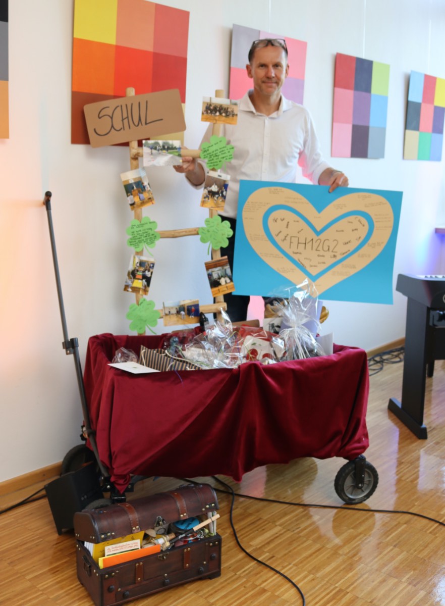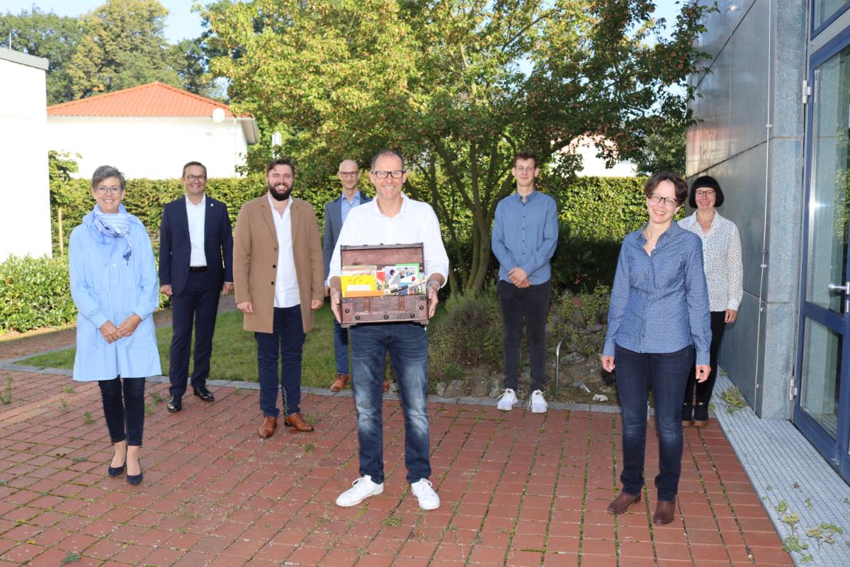 Mit Themenkisten kennt Guido Niermann sich aus, schließlich war der Deutsch- und Geschichtslehrer jahrelang Klassenlehrer bei angehenden Erzieherinnen und Erziehern und daher mit diesem Medium bestens vertraut. Nun aber bekam er selber eine solche – oder besser gesagt eine Kiste und einen ganzen thematischen Bollerwagen obendrein. Aus Anlass seiner offiziellen Einführung als Schulleiter des Berufskollegs Liebfrauenschule und auf Initiative des Lehrerrates hatten Schüler, Kollegen und Mitarbeiter der Schule vieles dafür zusammen getragen. Kiste und Bollerwagen quollen daher nur so über: mit guten Wünschen in Wort und Bild und im Film, kreativ verpackt und mit künstlerischen Accessoires ausstaffiert.