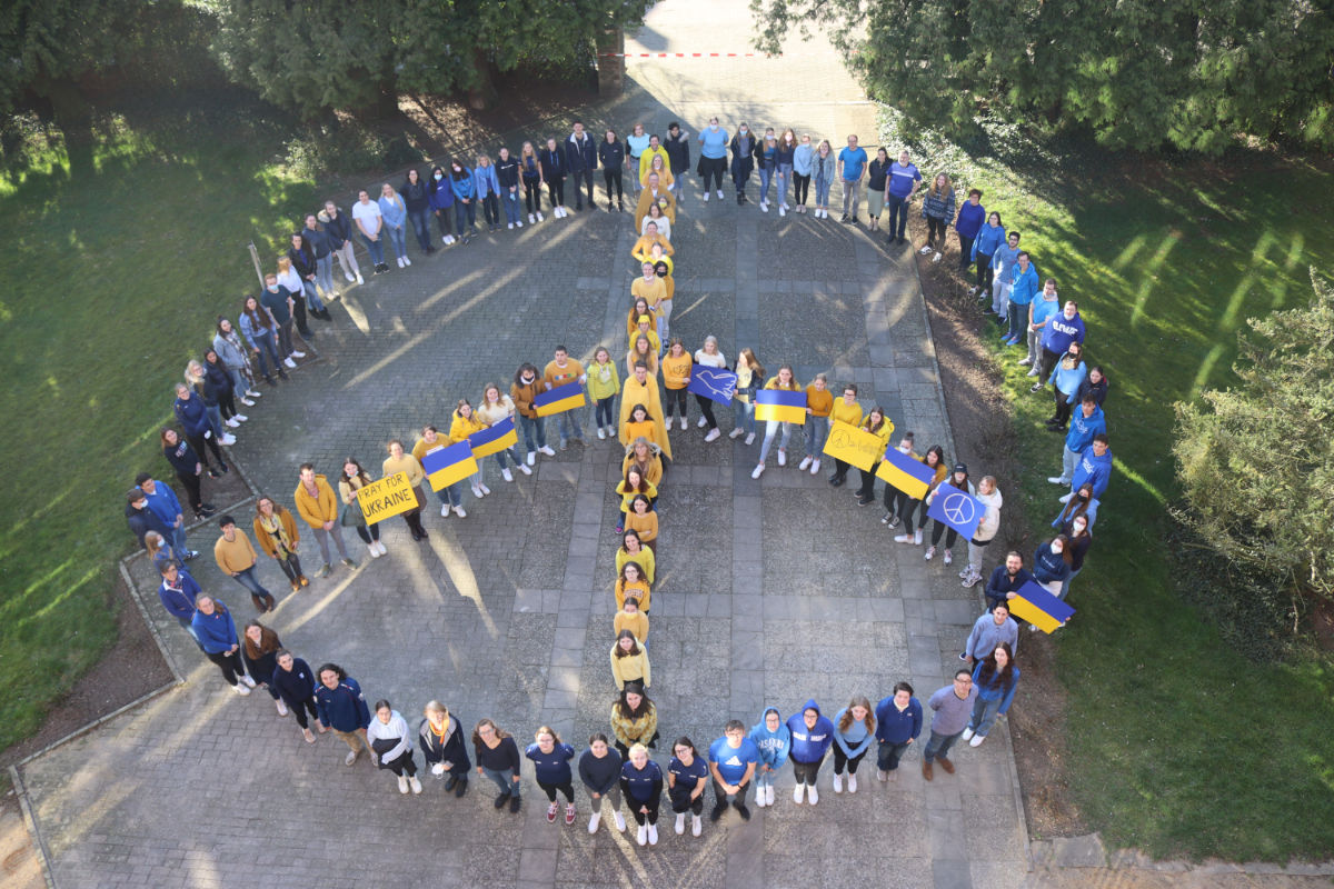Für eine gemeinsame Aktion der bischöflichen Berufskollegs entstand deshalb auch das Peace-Foto in den Farben der Ukraine.