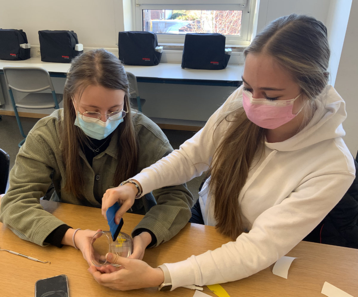 Deshalb hat die SV dank der tatkräftigen Unterstützung von Frau Bodden und Frau Thissen Klebefolien für unsere Trinkflaschen, für die Rückseite von Tablets oder Smartphones erstellt. Auf diesen Folien ist eine Friedenstaube sowie der Schriftzug LFSolidarität zu sehen. Lehrende wie Lernende kleben diese Folien auf Dinge des Alltags und werden so tagtäglich an die Hoffnung nach Frieden, an das Ziel von Solidarität erinnert. Es zeigt aber auch anderen sehr deutlich, was die Werte unserer Schule sind und wofür wir stehen. Daneben hat die SV auch Friedenslichter erstellt, die in jeder Klasse für den Frieden auf der Welt brennen. Es soll überall sichtbar sein, dass unsere Schule Frieden sucht, dass unsere Schule Zeichen gegen Leid und Ungerechtigkeit setzt.