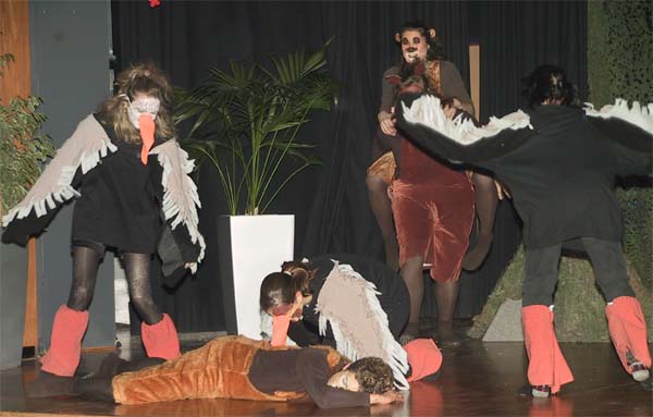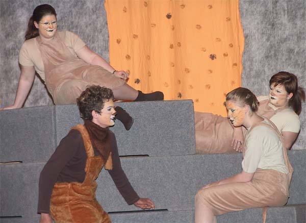 Eigentlich ist Yvonne Conen eine nette Person: freundlich, offen, teamfähig. Jetzt aber präsentierte sie sich gleich sechs Mal ganz anders: bösartig, hinterlistig, hasserfüllt, mordlüsternd. Ihre Lehrerin Karla Hilsemer freute das besonders. Denn Yvonne Conen hatte einen schwierigen Part übernommen. Im Kindermusical „König der Löwen“, das die Theatergruppe der Fachoberschule für Sozial- und Gesundheitswesen sechs Mal in der Aula der Liebfrauenschule aufführte, stand sie für das Böse: den Löwen Scar, der intrigierend mit Hilfe von ebenso hässlichen wie blutrünstigen Hyänen versuchte, seinem Neffen Simba die Herrschaft über das Land zu verwehren. Brillant, wie die Schülerin in Gestik, Mimik und Intonation dieses Böse verkörperte.