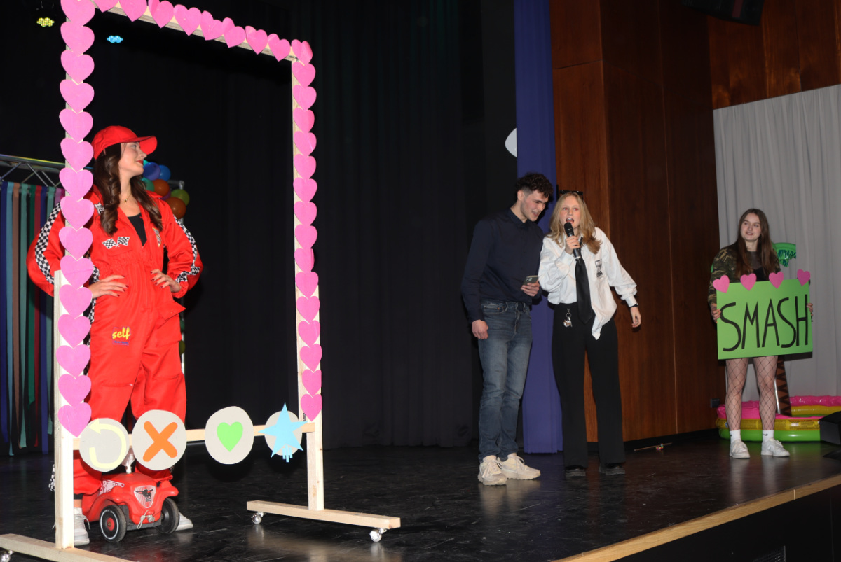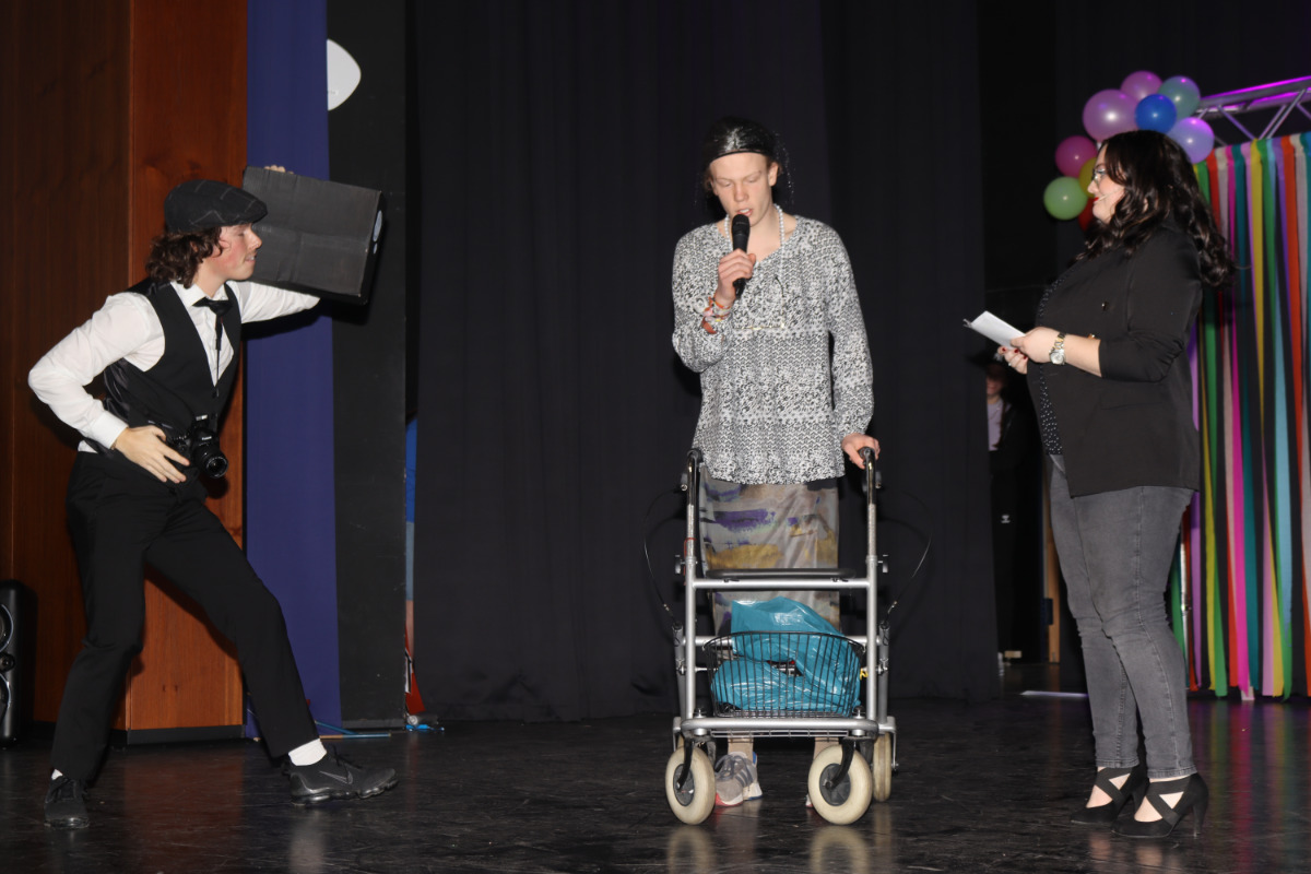Pünktlich zu Beginn der heißen Phase der 5. Jahreszeit lud die SV zu Altweiber traditionell alle in die Aula ein zu einem Programm, das alle Facetten eines Festivals beleuchtete …. von der Main-Stage bis hin zum Seniorenpaar, das sich über Lautstarke und Müll beschwerte.