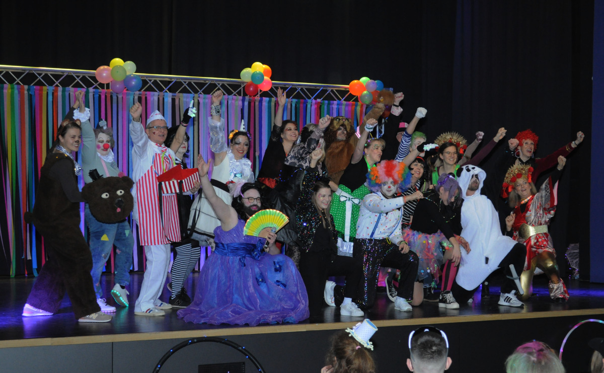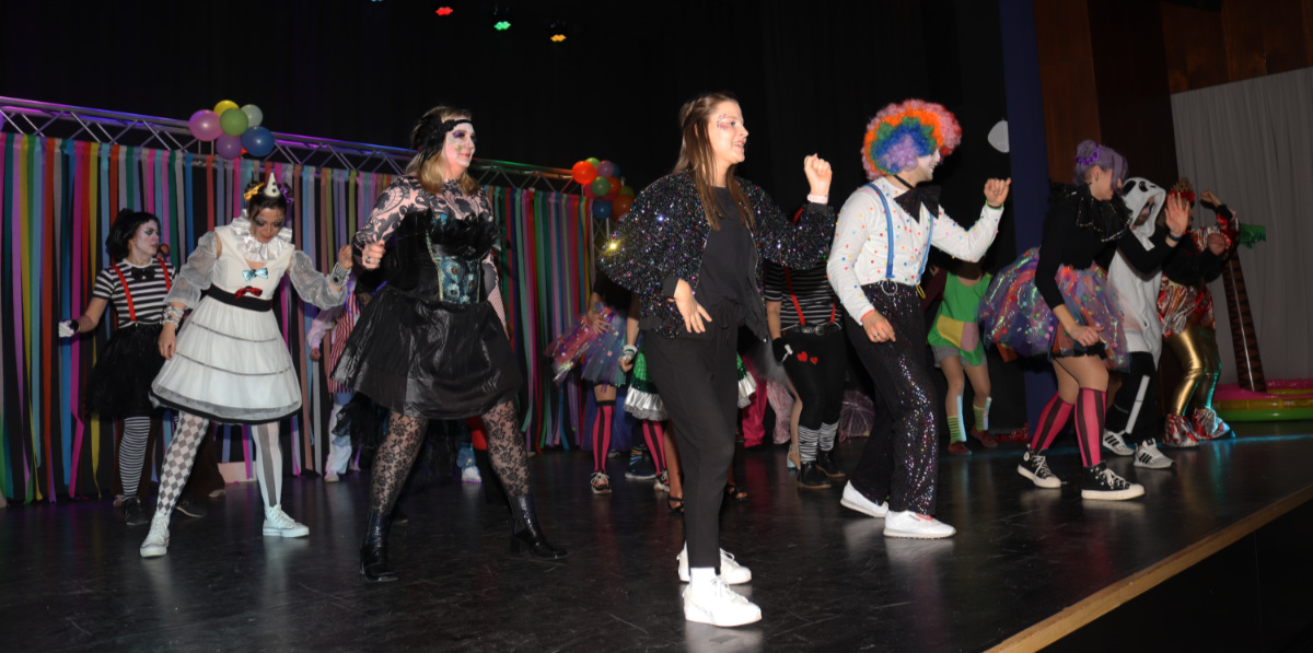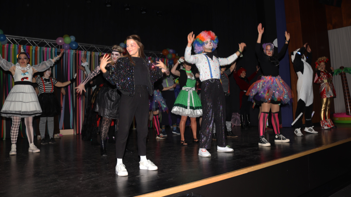 Bunt war das Programm, das von vielen Klassen gestaltet wurde. Aber auch zwei Dutzend Lehrer ließen sich nicht lumpen und tanzten und performten zirkuskonform zu „The Greatest Show“. Hut ab!