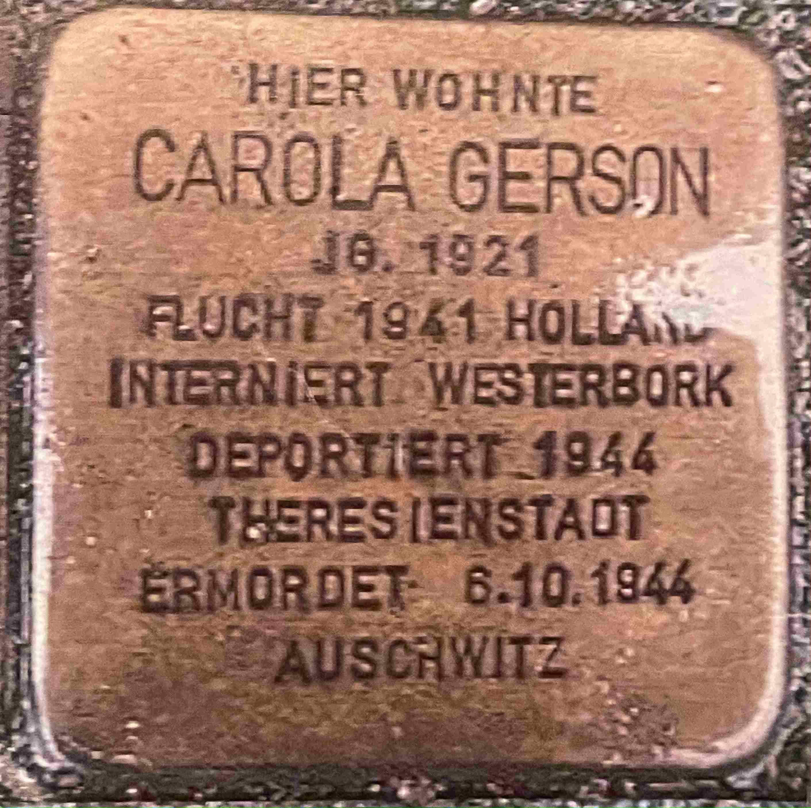 Auch Carola Gerson, deren „Stolperstein“ die Schülerinnen und Schüler der Liebfrauenschule bei der Demonstration verteilten, gehörte zu den späteren Opfern.