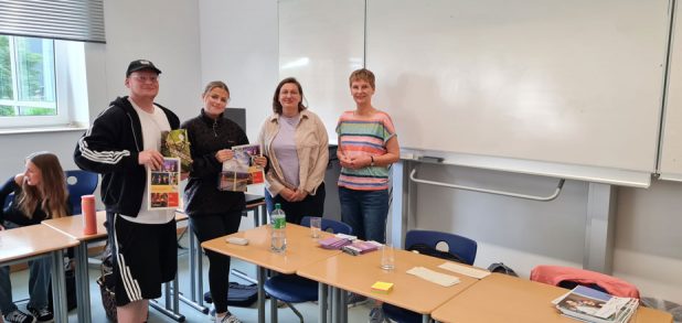 Die Sozialpädagogin Frau Kempers hatte Informationsmaterial über Selbsthilfegruppen und den Kontaktkreis u.a. für die SchülerInnen mitgebracht. Sie stellte die organisatorischen Strukturen der DMSG, der Landesverbände und Ortsverbände sowie die Vielfalt der Selbsthilfegruppen, 150 Gruppen im Kreis Kleve, vor. Sie betonte zudem, dass es ein dauernder Kampf mit den Krankenkassen gäbe, auch beim Kreis mit einen Schwerbehindertenausweis zu bekommen oder die Erwerbsminderungsrente durchzukriegen. Sie wies auch auf den anstehenden Welt-MS-Tag am 30. Mai 2025 hin.