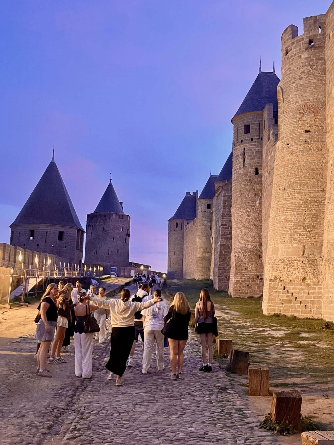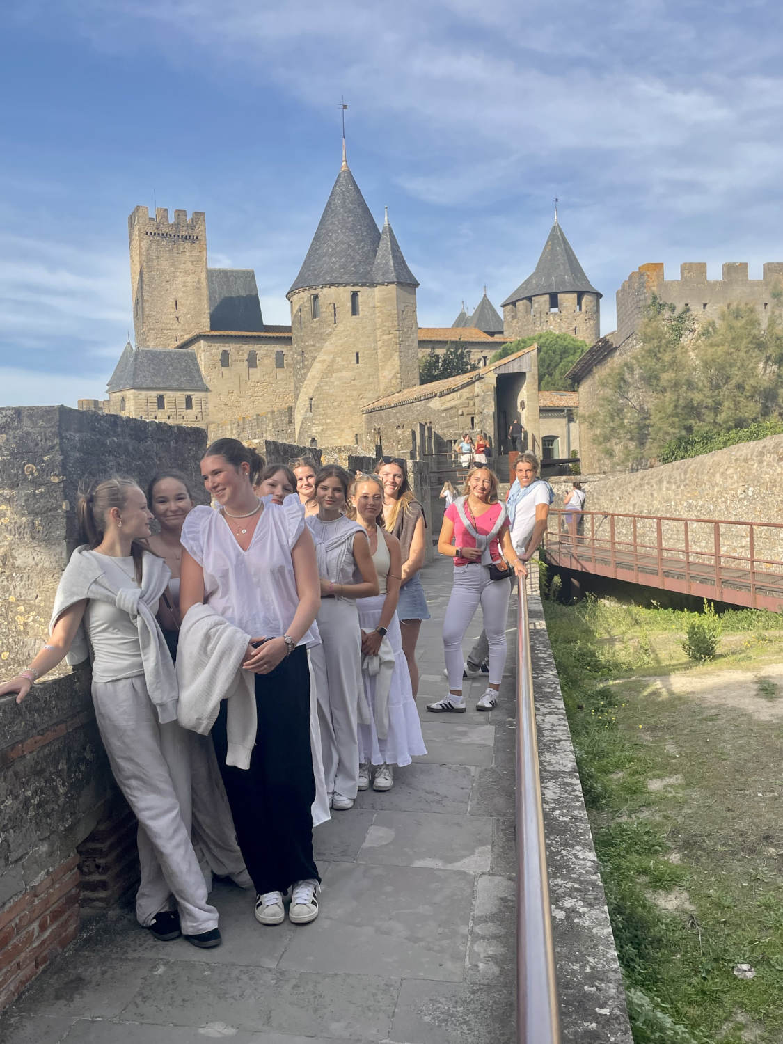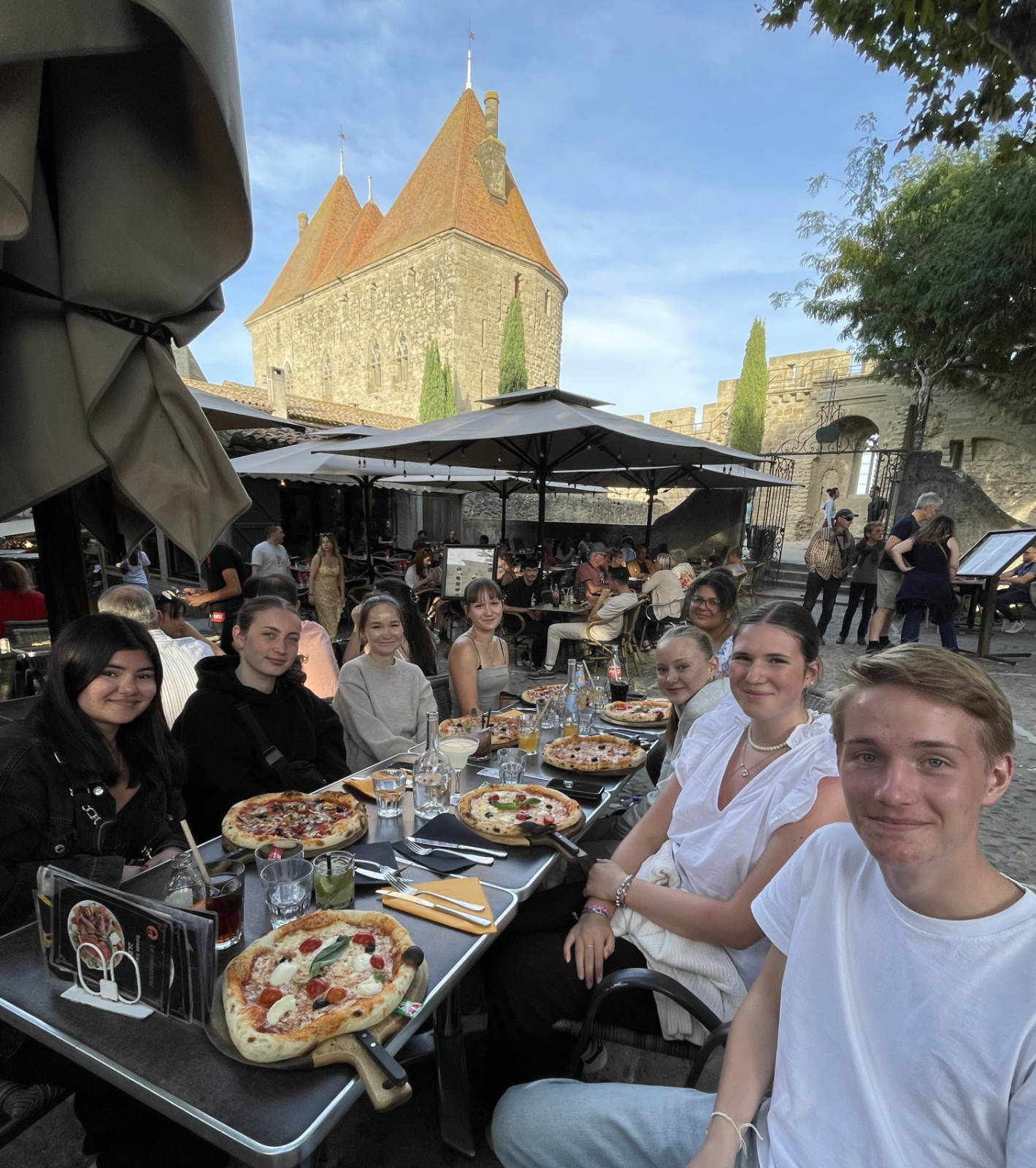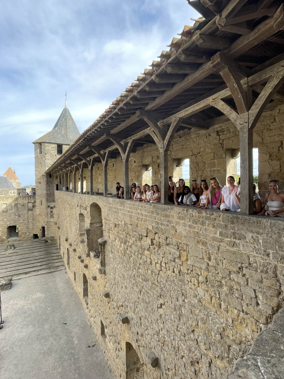 Wir starteten erst mittags zu unserer weitesten Bustour. Die mittelalterliche Festungsstadt Carcassonne, ebenfalls ein UNESCO-Welterbe, erwartete uns. Unsere Route ging durch klassische Weinanbauregionen und wir überquerten ein weiteres UNESCO-Welterbe unserer Fahrt, den Canal du Midi. Die Tour endete an der von zwei immensen Mauern umgebenen mittelalterlichen Altstadt von Carcassonne, deren bestens erhaltene Festung wir genau erkundeten und über deren gesamte, kilometerlange Mauern mitsamt deren 52 Türmen wir laufen konnten, um einen fantastischen Blick in die herrliche Landschaft des Languedoc zu werfen. Wir hatten auch ausreichend Zeit, um auf eigene Faust durch die engen Gassen zu ziehen und in den vielen Andenkenläden auf Souvenirsuche zu gehen. Die meisten von uns gönnten sich auf dem gemütlichen Place Marcou auch noch eine Pizza, Pasta oder einen Burger.