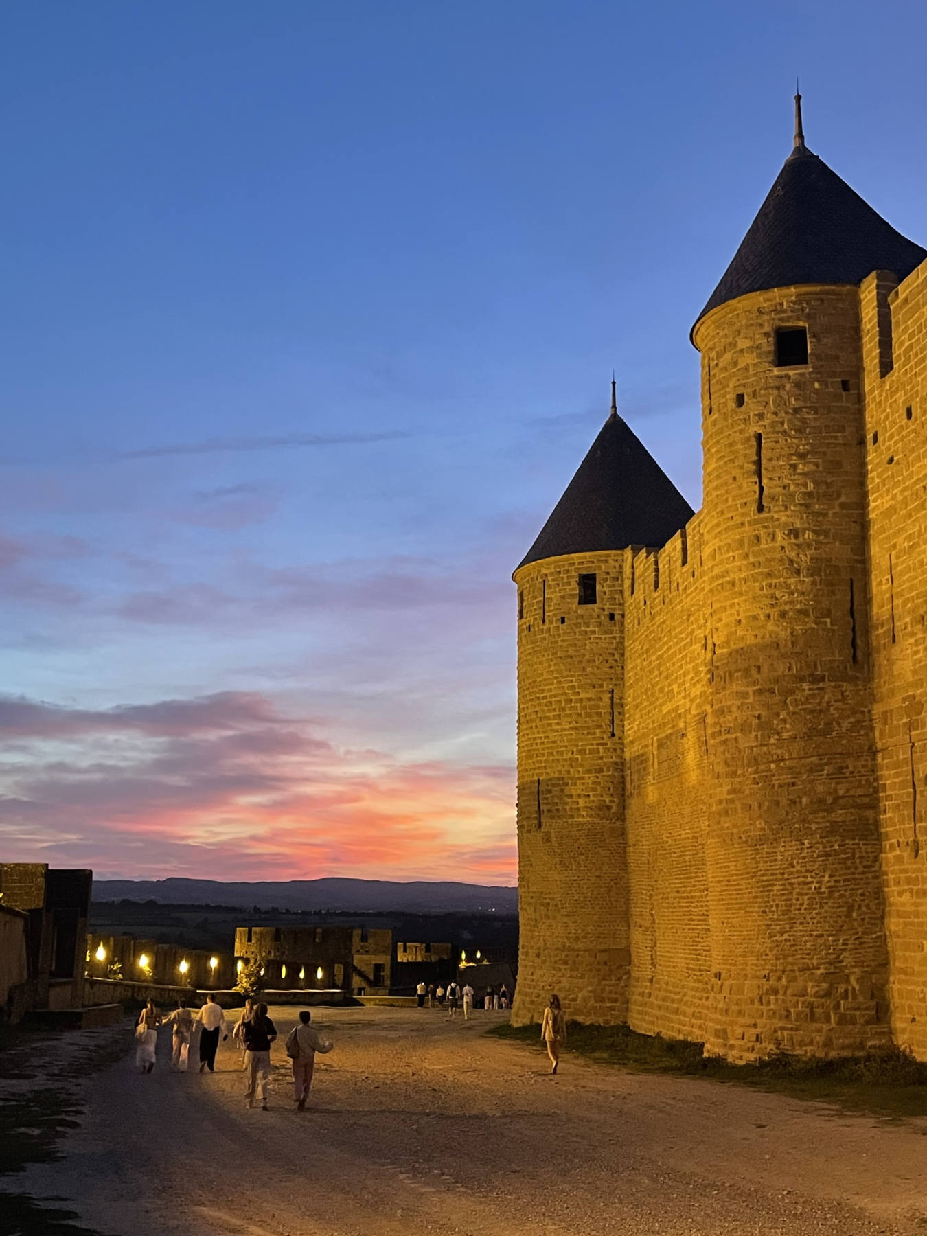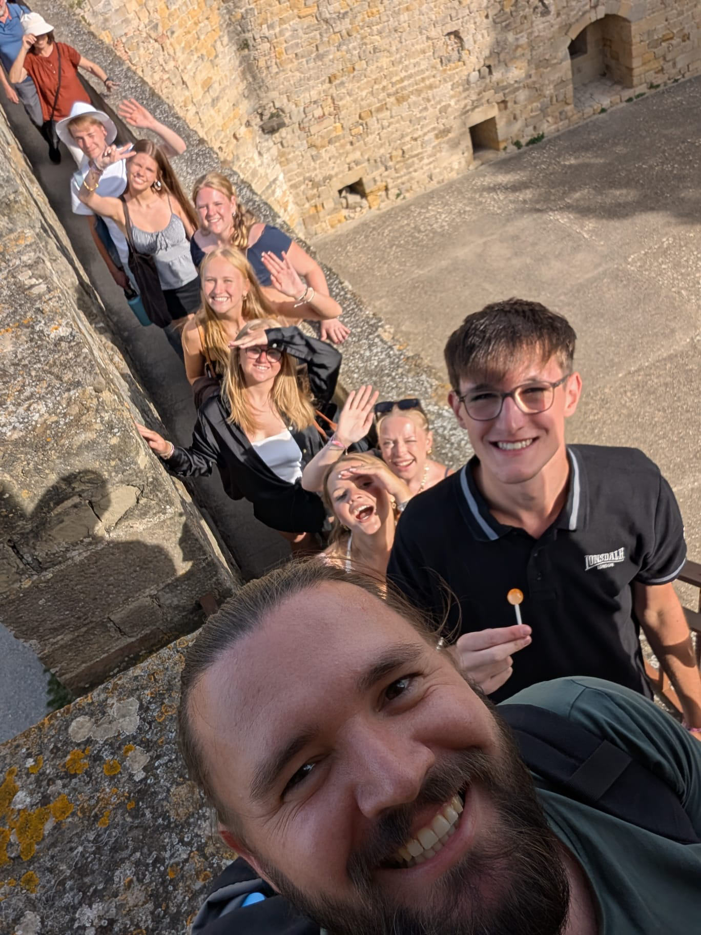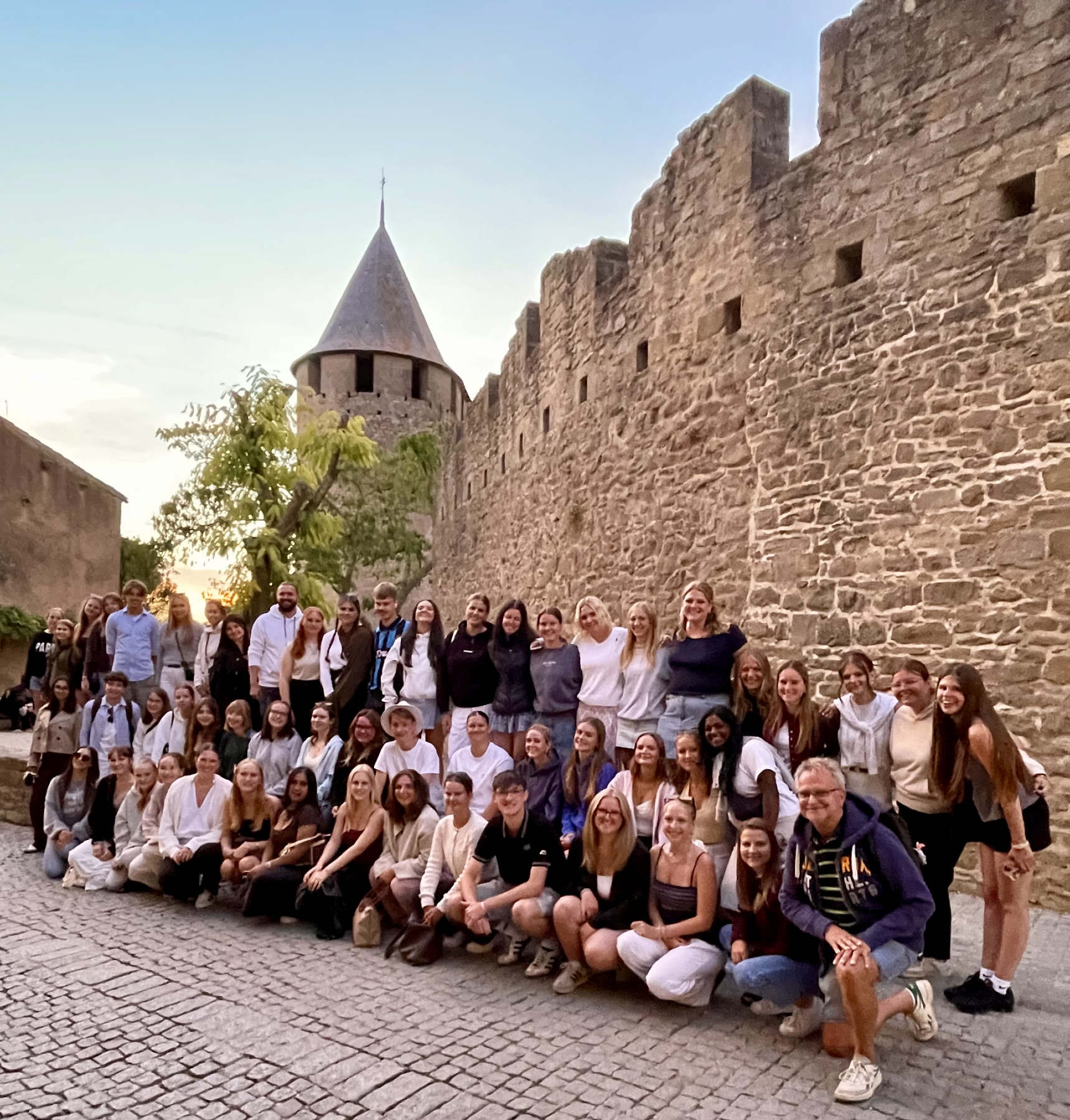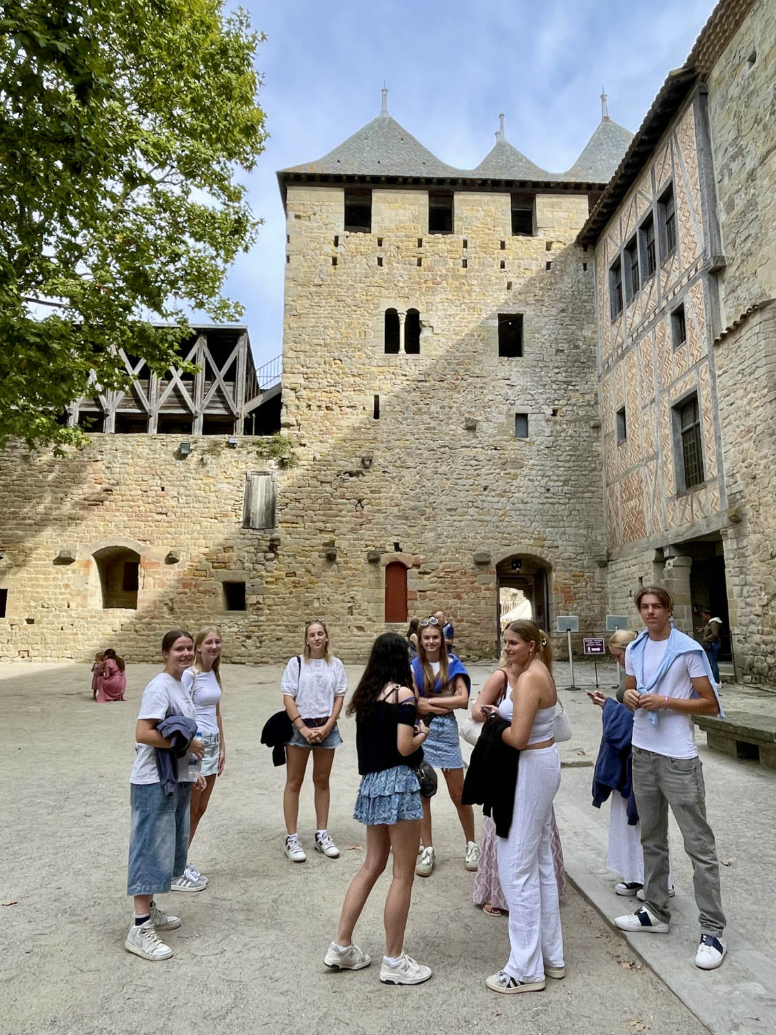 Wir starteten erst mittags zu unserer weitesten Bustour. Die mittelalterliche Festungsstadt Carcassonne, ebenfalls ein UNESCO-Welterbe, erwartete uns. Unsere Route ging durch klassische Weinanbauregionen und wir überquerten ein weiteres UNESCO-Welterbe unserer Fahrt, den Canal du Midi. Die Tour endete an der von zwei immensen Mauern umgebenen mittelalterlichen Altstadt von Carcassonne, deren bestens erhaltene Festung wir genau erkundeten und über deren gesamte, kilometerlange Mauern mitsamt deren 52 Türmen wir laufen konnten, um einen fantastischen Blick in die herrliche Landschaft des Languedoc zu werfen. Wir hatten auch ausreichend Zeit, um auf eigene Faust durch die engen Gassen zu ziehen und in den vielen Andenkenläden auf Souvenirsuche zu gehen. Die meisten von uns gönnten sich auf dem gemütlichen Place Marcou auch noch eine Pizza, Pasta oder einen Burger.