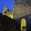 Vor Einbruch der Dunkelheit versammelten wir uns wieder vor der mittelalterlichen Burg: Ein gemeinsamer Spaziergang bei rötlich-orange-violettem Abendrot zwischen den anheimelnd angestrahlten beiden Festungsmauern endete am Halteplatz für unseren Bus im Osten der Stadt. Erst kurz vor Mitternacht erreichen wir unser Feriendorf .