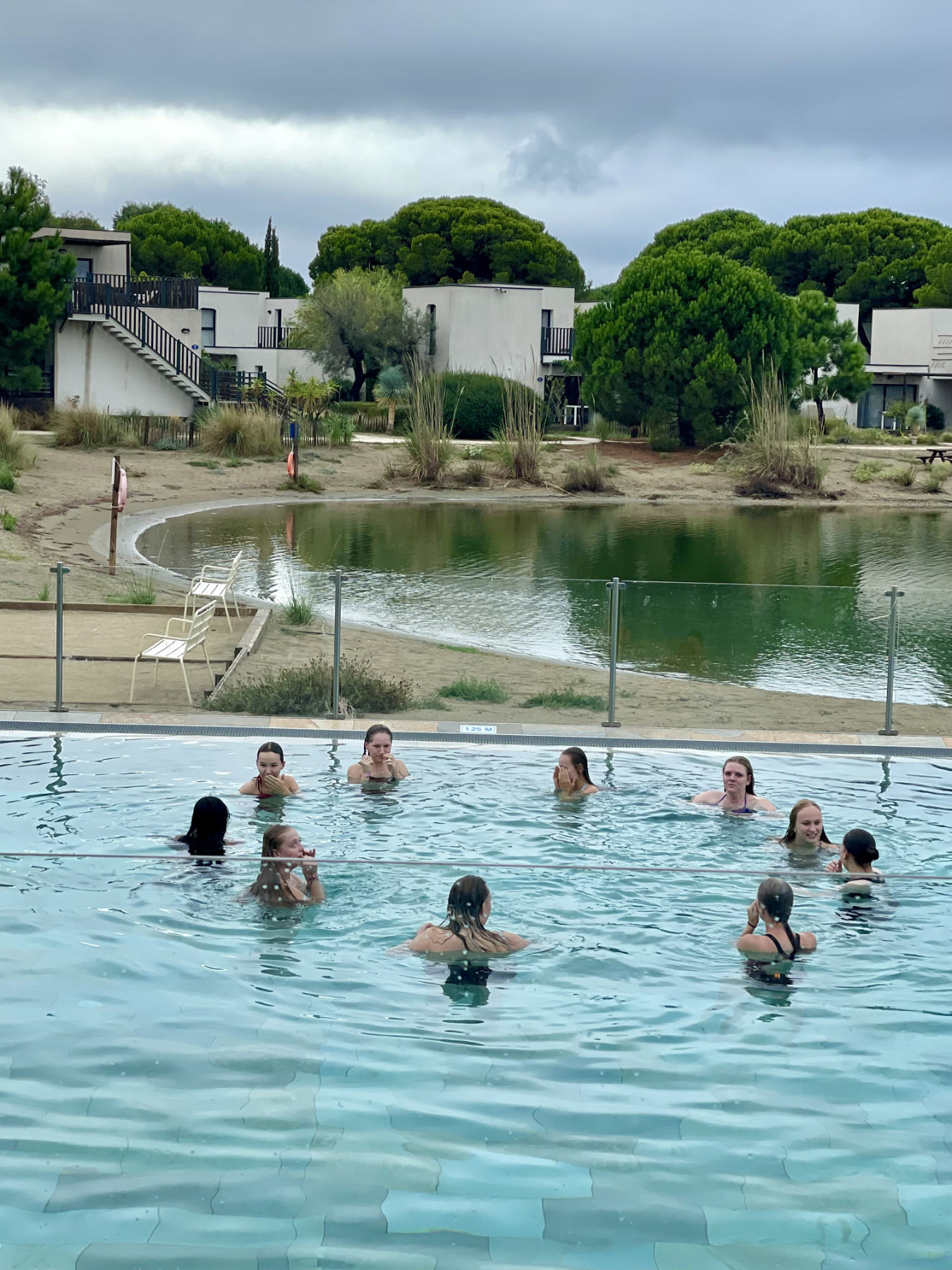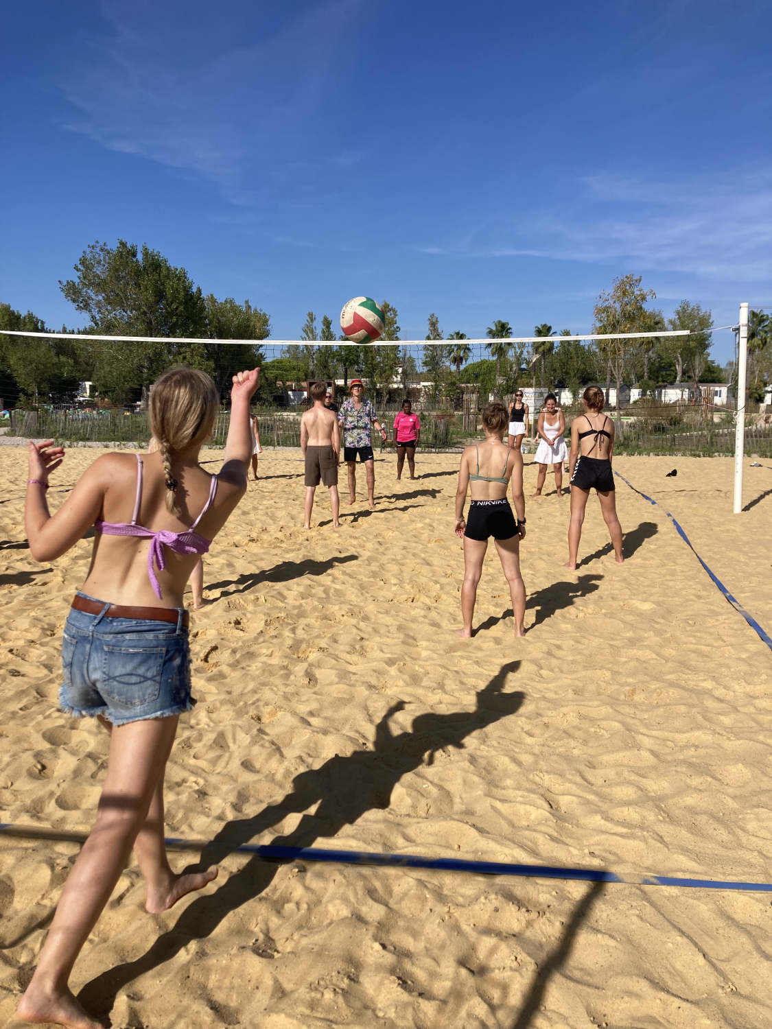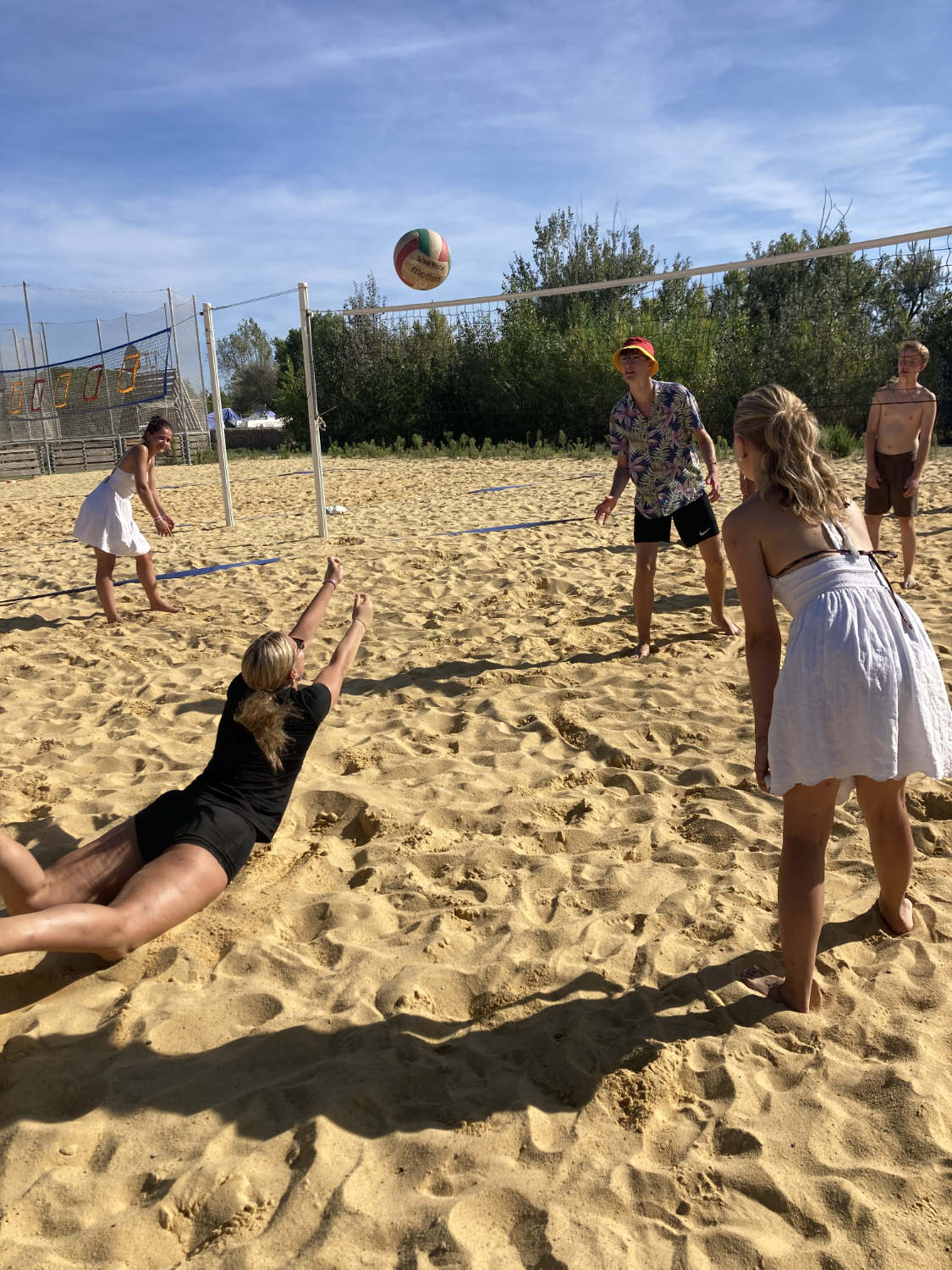 Nach drei Tagen mit vollem Programm war der Donnerstag weitaus chilliger. Langeweile wurde dennoch nicht geschoben, denn sportliche Angebote standen auf dem Programm: natürlich das Sonnenbaden im angenehm temperierten Pool unter der heißen Sonne Südfrankreichs, aber auch andere sportliche Aktivitäten: Volleyballmatches im feinen Sand und, was es bei früheren Fahrten noch nie gab: Reiten auf dem Rücken von Camargue-Pferden durch die weitläufige Landschaft!