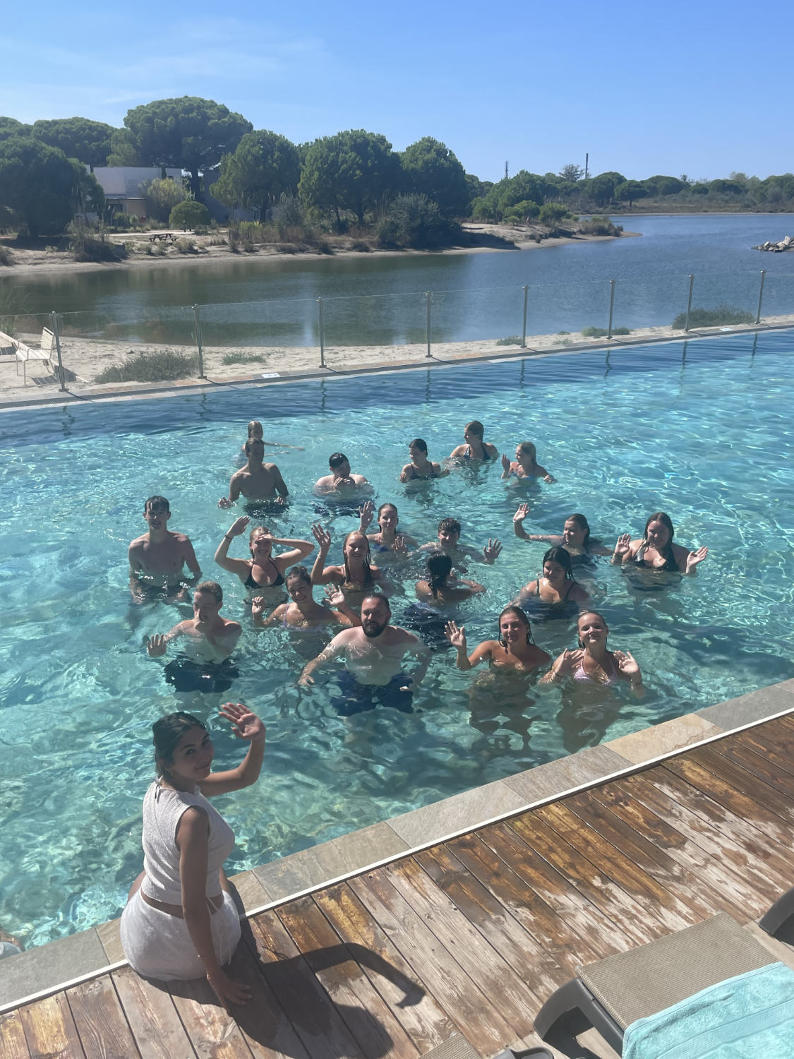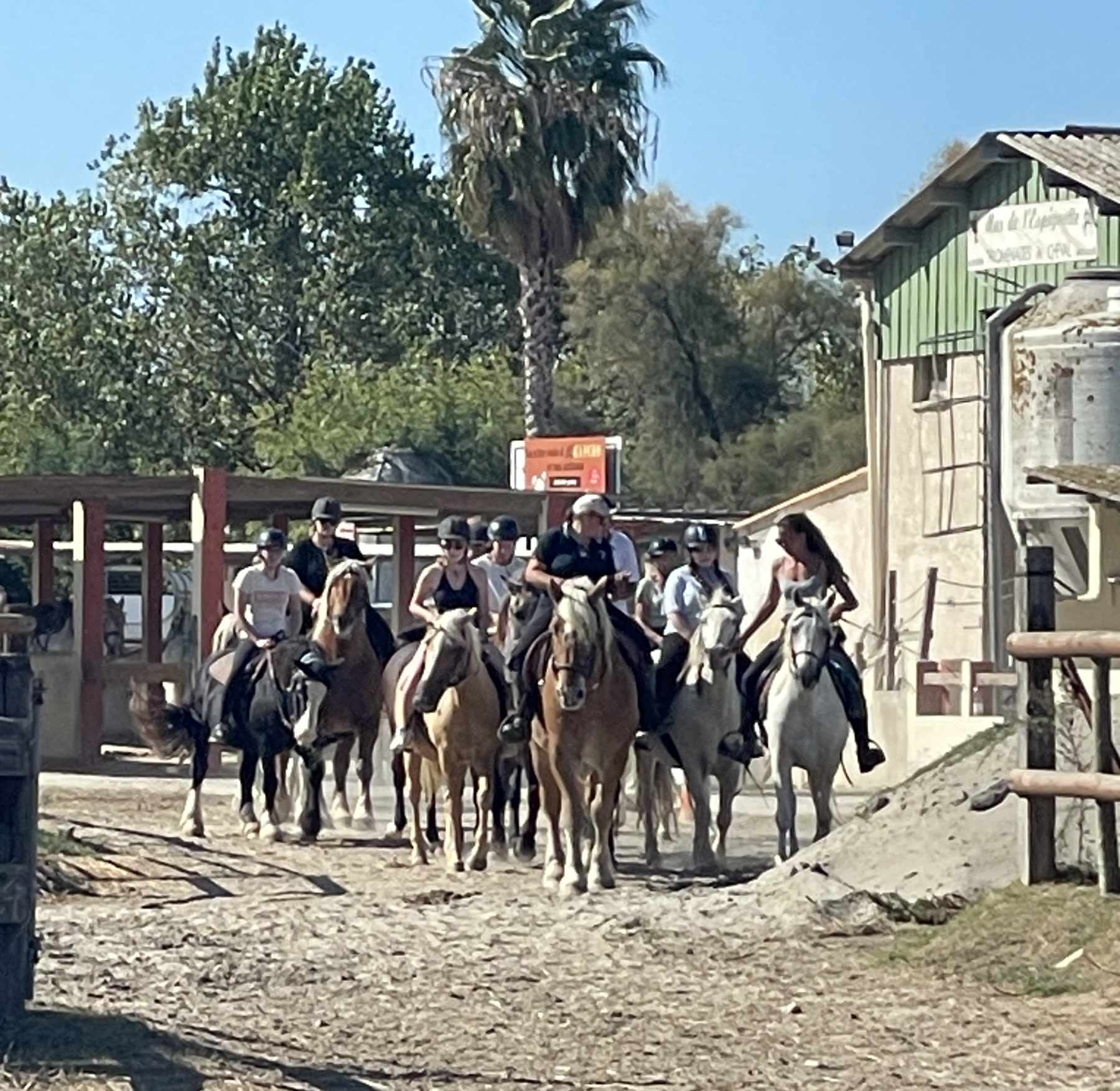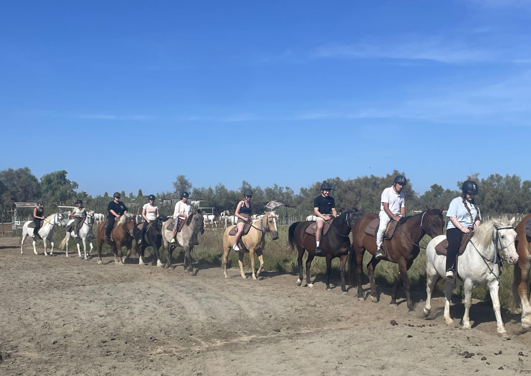 Nach drei Tagen mit vollem Programm war der Donnerstag weitaus chilliger. Langeweile wurde dennoch nicht geschoben, denn sportliche Angebote standen auf dem Programm: natürlich das Sonnenbaden im angenehm temperierten Pool unter der heißen Sonne Südfrankreichs, aber auch andere sportliche Aktivitäten: Volleyballmatches im feinen Sand und, was es bei früheren Fahrten noch nie gab: Reiten auf dem Rücken von Camargue-Pferden durch die weitläufige Landschaft!
