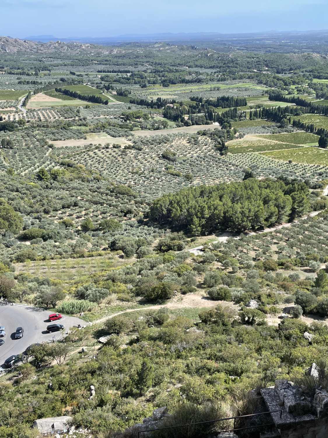 Weiter ging’s nach Les Baux-de-Provence, einem der malerischsten Örtchen der Provence mit nur meterbreiten Gässchen auf einem hohen Felsen gelegen, auf dessen Spitze wir Zutritt zu den spärlichen Ruinen eines alten Schlosses hatten. Bei böigem Wind hatten wir von hier aus einen prächtigen Blick ins Tal und auf die für die Provence typischen Olivenhaine und Weinhänge.
