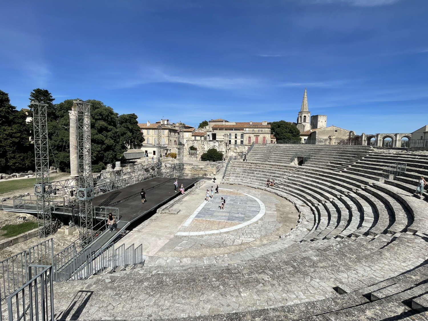 Heute ging es um 9 Uhr früh los, denn in der alten Römerstadt Arles, unserem fünften UNESCO-Welterbe, war der große bunte Markt nur bis 12 Uhr aufgebaut. Doch nicht nur der Rundgang vorbei an den vielen Ständen mit Obst, Fisch, Oliven und Gewürzen lohnte sich, sondern gerade auch der Blick auf und in die Relikte der Römer in dieser Stadt, hier insbesondere auf das große Amphitheater und das noch ältere antike Theater. Wer nicht nur durch die engen Gassen, durch die schon van Gogh streifte, schlendern wollte, der warf einen Blick in die um 1200 erbaute Kathedrale Saint Trophime. Kunstinteressierte besuchten unterdessen das Museum „Fondation Vincent van Gogh“.