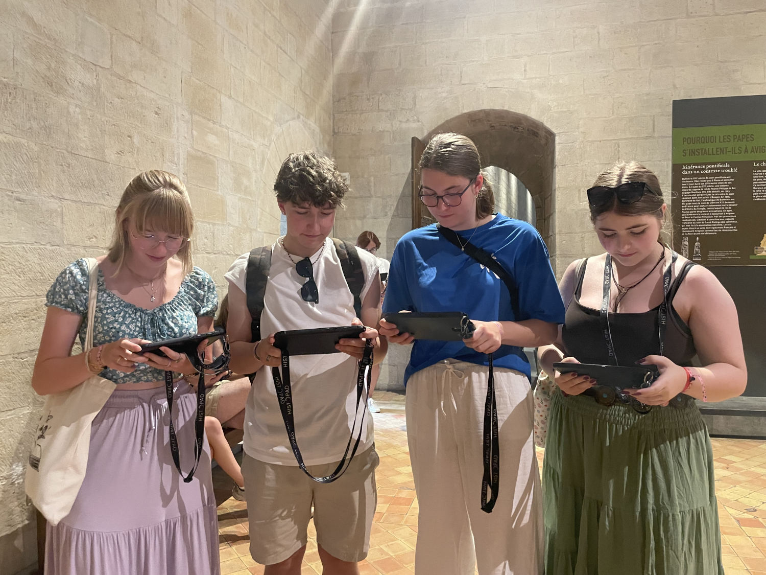 Weiter ging es nach Avignon, wo wir, ausgestattet mit digitalen Pads, die Möglichkeit hatten, den monumentalen ehemaligen Papstpalast zu besichtigen. Er war das zweite von insgesamt sechs (!!!) UNESCO-Welterben, die wir auf unserer Tour kennenlernten. Aber nicht nur der festungsartige, innen weitgehend karge Papstpalast war sehenswert, sondern auch die alte Rhône-Brücke Pont St. Bénézet und die vielen kleinen Gassen mit dem Place de l’Horloge.