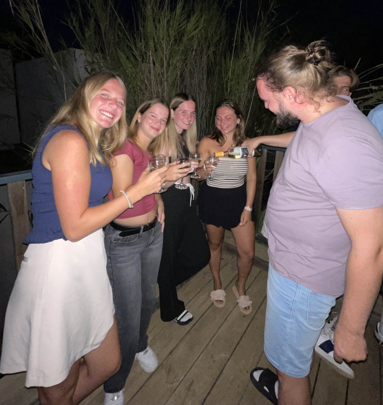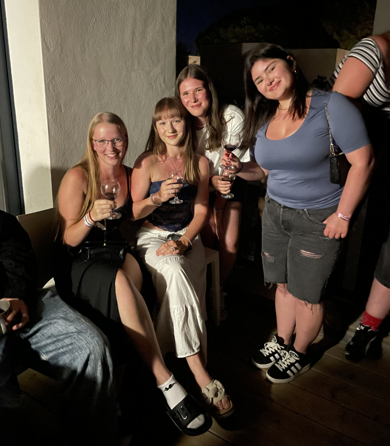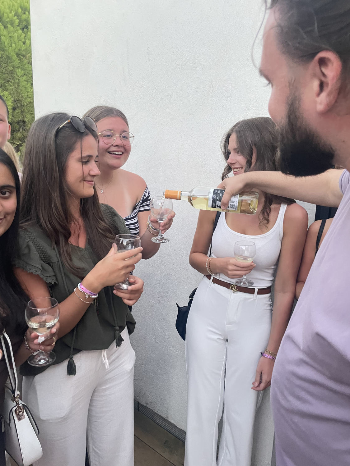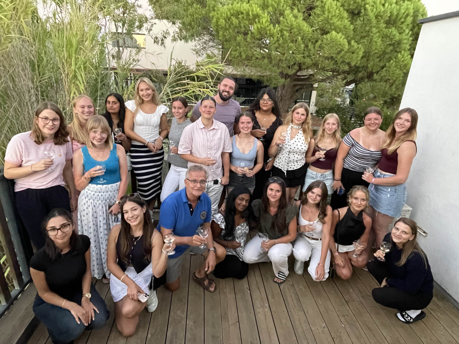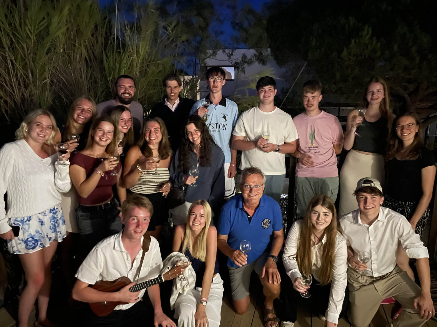 Bei also bestem Wetter erkundeten alle die nähere Umgebung, wanderten nach Le Grau-du-Roi, dem Ort, wo wir wohnten, oder bestaunten die vielen Boote in Port Camargue. Die meisten zog es aber auch zum langen Sandstrand „Plage de l’Espiguette“. Abends trafen sich dann alle auf der Dachterrasse eines der beiden Lehrerbungalows, wo, angereichert mit vielerlei Infos, die Verkostung unterschiedlicher Weine der Region anstand.