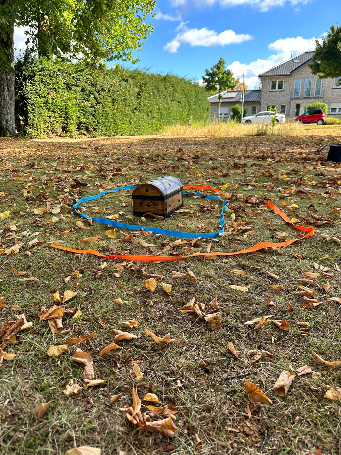 • Gruppe 2 entwickelte ein Spiel, bei dem eine Person mit Augenbinde ausschließlich über vereinbarte Geräusche durch einen Parcours geleitet wurde. Hier standen Kommunikation ohne Worte, Merkfähigkeit und Vertrauen im Mittelpunkt.