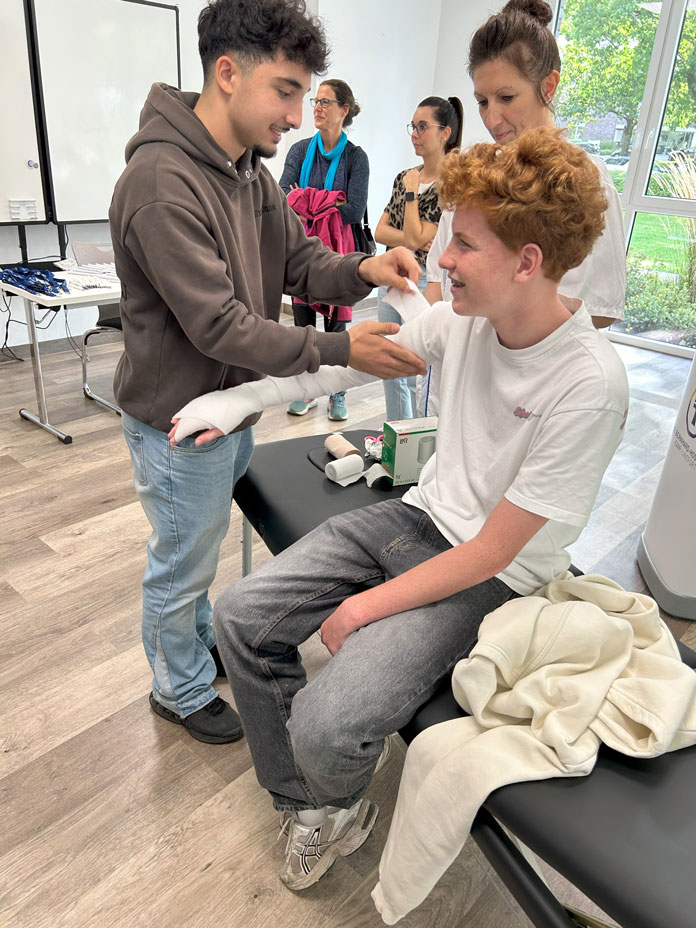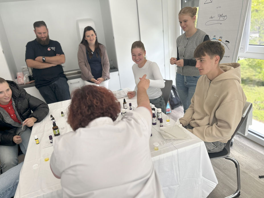 Nachdem unsere Schüler/innen bereits vom erstmaligen ToT dieser Art unter unserer Beteiligung im vergangenen Jahr schwer beeindruckt waren, so war die Exkursion auch diesmal ein voller Erfolg. Nach einem sehr informativen Vortrag über die Ausbildungsstruktur konnten unsere Schüler/innen – in vier Kleingruppen aufgeteilt – an zahlreichen Mitmachaktionen (z.B. Wundmanagement, Aromatherapie, Kinästhetik, Pädiatrische Pflege) der kooperierenden Ausbildungskrankenhäuser teilnehmen, die einen Einblick in die Vielfalt der Ausbildungsinhalte ermöglichten.