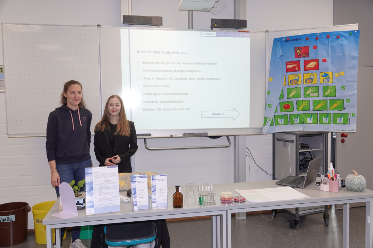 Aber nicht nur klassische Ausbildungen und Studiengänge wurden vorgestellt. Zum Angebot des Tages gehörten auch außergewöhnliche Berufe wie die Gebärdendolmetscherin, die Operationstechnische Assistentin und die tiergestützt arbeitende Therapeutin. Abgerundet wurde das breite Spektrum durch Präsentationen der benachbarten Hochschulen und durch eine Vielzahl von Berufen, die nicht direkt den beiden Schwerpunkten „Ernährung und Hauswirtschaft“ und „Gesundheit und Soziales“, für die die Liebfrauenschule steht, zugeordnet werden können. Vertreten waren so zum Beispiel auch die Justiz, der Zoll und die Finanzverwaltung ebenso wie die Polizei, die Feuerwehr und die Bundeswehr. Auch Interessenten für den Journalismus und die Arbeit in einer Rechtsanwaltskanzlei oder in der Apotheke fanden kompetente Gesprächspartner.