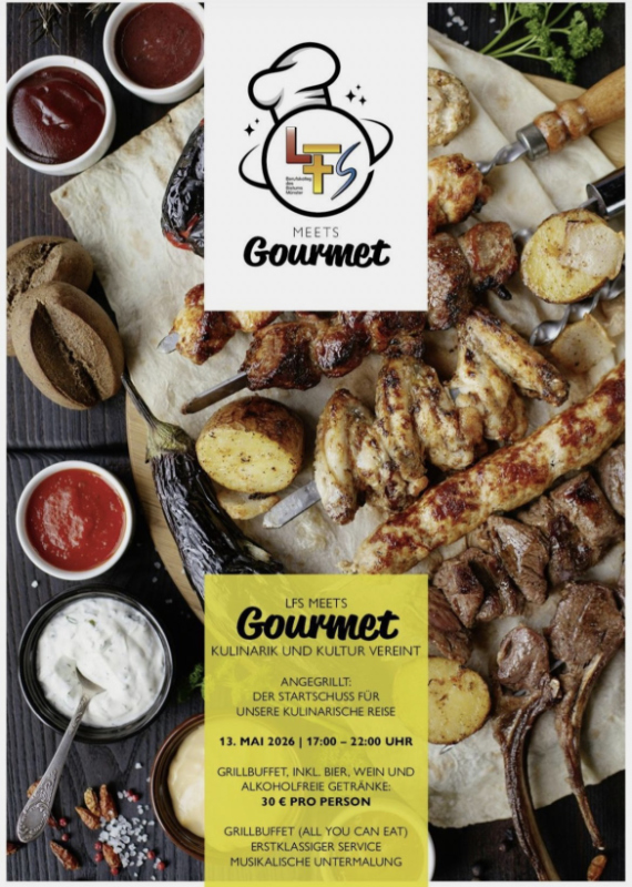 Am Mittwoch, 13. Mai, feiert unsere Schule ab 17 Uhr bis ca. 22 Uhr eine besondere Premiere: Unter dem Titel „LFS meets Gourmet – Kulinarik und Kultur vereint“ lädt die FH/11 E zu einem einzigartigen Grillevent ein, das Genuss, Kreativität und schulische Zusammenarbeit auf höchstem Niveau vereint. Doch eines ist jetzt schon klar: Dieses Event sollte man sich nicht entgehen lassen!