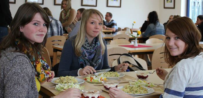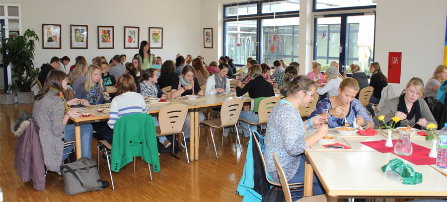 Am 19. September 2011 öffnete zum ersten Mal in diesem Schuljahr unsere Mensa. Sie ist ein wichtiger Ort der Begegnung in unserem Berufskolleg. Hier haben Schüler und Lehrer täglich Gelegenheit, in der Mittagspause für ihr leibliches Wohl zu sorgen und dabei ihrem Kommunikationsbedürfnis nachzukommen.