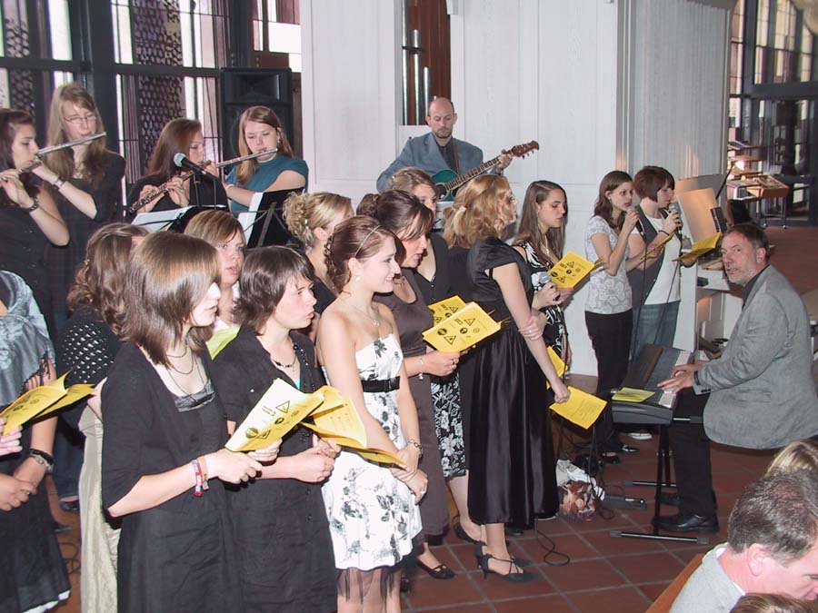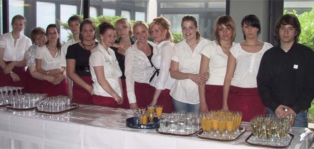 Im Rahmen von drei festlichen Entlassungsfeiern wurden in diesem Jahr rund 350 Schülerinnen und Schüler von der Liebfrauenschule verabschiedet. Dem feierlichen Gottesdienst in der Adelheidkirche schloss sich in der Aula die Zeugnisausgabe an, die eingebettet war in ein buntes Programm mit Musik und Schauspiel. Im Anschluss daran stießen die erfolgreichen Entlassschüler, die Eltern und Lehrer im Pädagogischen Zentrum mit Sekt, Saft und Mineralwasser auf die erfolgreich bestandenen Prüfungen an. Der Umtrunk wurde wieder professionell von der SE vorbereitet.