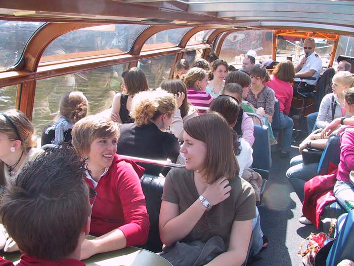 Schon das Morgenprogramm für die rund 70 ausländischen Gastschüler war attraktiv: Kanufahren auf der Dommel, Besichtigung des großen Phillips-Werkes und eine Führung durch das Fußballstadion vom PSV Eindhoven incl. einmal Probeliegen auf der Physiotherapiebank, auf der schon Ronaldo, van Nistelrooy und Romario ihre Muskeln haben durchkneten lassen.
