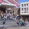 Nach dem Besuch der Katharinenkirche folgte dann Beatrix Gang durch die City, gefolgt von rund 150 Professoren in ihren langen Talaren. Hier hatte man also ausreichend Gelegenheit die Königin aus nächster Nähe zu sehen: gekleidet in warmen Brauntönen „Ton in Ton“, das Haar perfekt sitzend unter einem großen, mit kleinem Federschmuck verzierten Hut, insbesondere die Augen stärker geschminkt (um die herum sich doch vermehrt Altersfalten bilden), ein dickes Goldarmband am rechten Arm und an der Stelle des Eheringes einen mit einem großen, mehrkarätigen Diamanten versehenen Ring.
