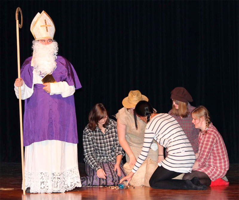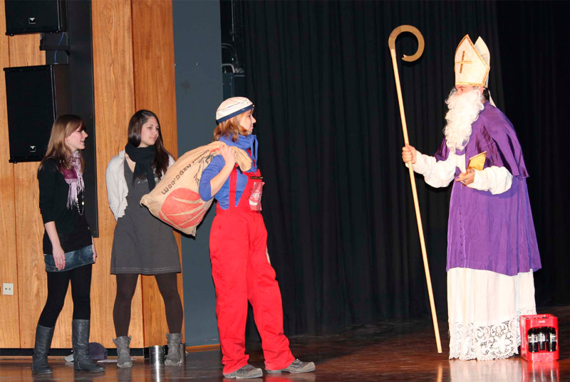 Nikolaus? Weihnachtsmann? Coca-Cola-Repräsentant? Um wen geht es denn nun eigentlich im Advent und wie lautet die Botschaft des Hl. Nikolaus? Passend zum Nikolausfest hatten angehende Erzieher und Erzieherinnen die Schulgemeinschaft in die Aula geladen, um mit einem humorvollen Kurzprogramm auf der Bühne auf den Advent und den Nikolaustag einzustimmen.