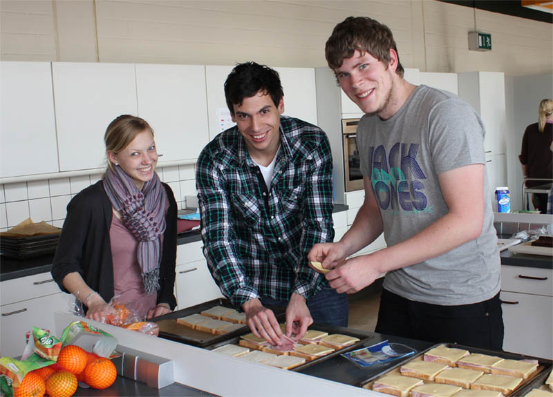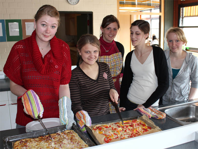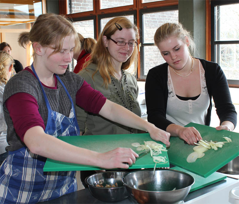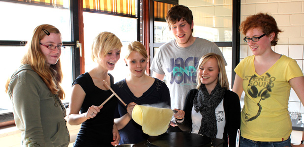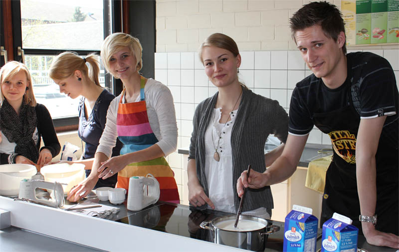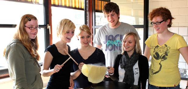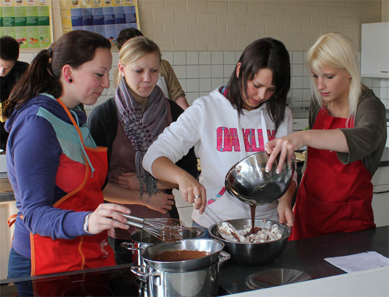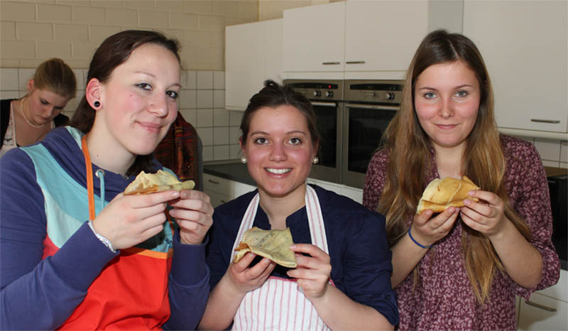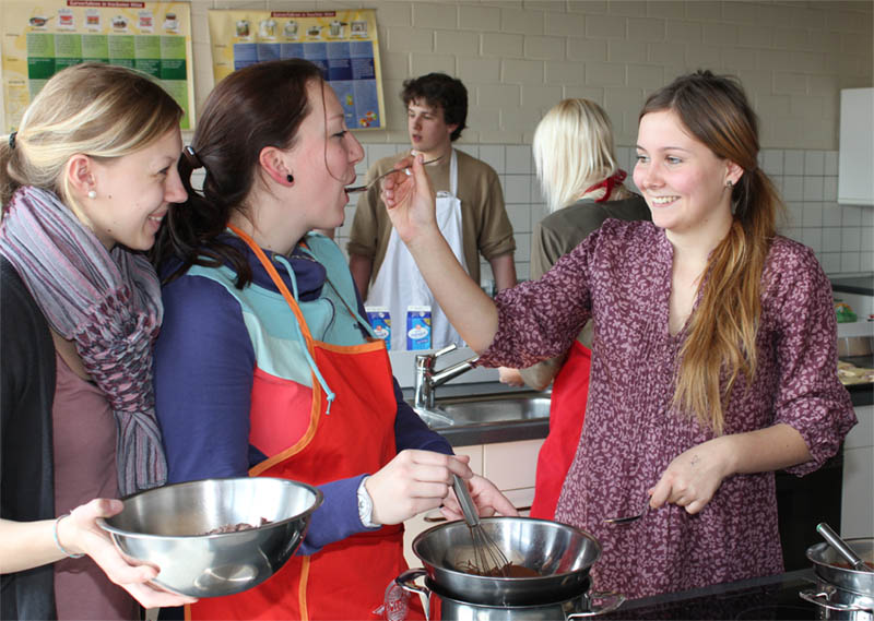 Viel Spaß hatte der Französisch-Kurs der AH/13 des Beruflichen Gymnasiums am Ende der dreijährigen Schulzeit beim Kochen französischer Gerichte. Auf dem Speisenplan standen der Croque Monsieur, Elsässer Flammkuchen, Lothringischer Käsekuchen, diverse Crêpes und als Dessert Mousse au chocolat.