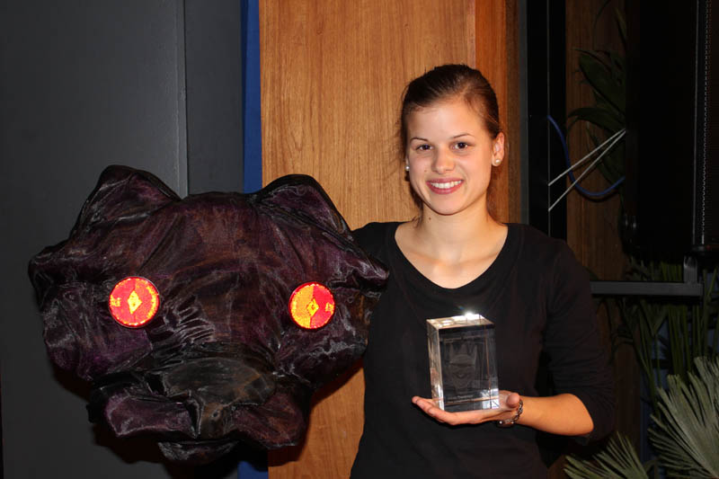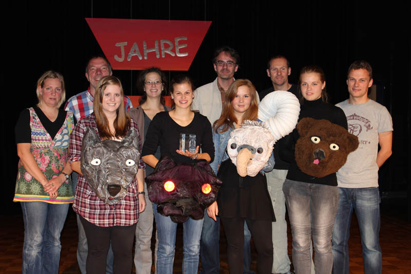 Bei der Preisverleihung im Stadttheater Solingen war die Freude bei den Gelderner Schüler und Lehrern daher umso größer, als sie den zweiten Preis verbunden mit einem Preisgeld in Höhe von 600 Euro für die beste Produktion entgegen nehmen konnten. Auch Schauspielerin Katrin Heilen traute ihren Ohren kaum, als sie als beste Schauspielerin auf die Bühne gerufen wurde. „Damit habe ich überhaupt nicht gerechnet. Es ist schon toll, die Anerkennung für die schauspielerische Leistung auch von ganz unbekannten Menschen zu bekommen“, freut sich die 19-Jährige, die bereits im „Zauberer von Oz“ (2010) der Liebfrauenschule eine Hauptrolle besetzt hatte. Verbunden ist ihr Preis mit einem Gutschein über einen Theaterworkshop, den sie in nächster Zeit einlösen möchte.
