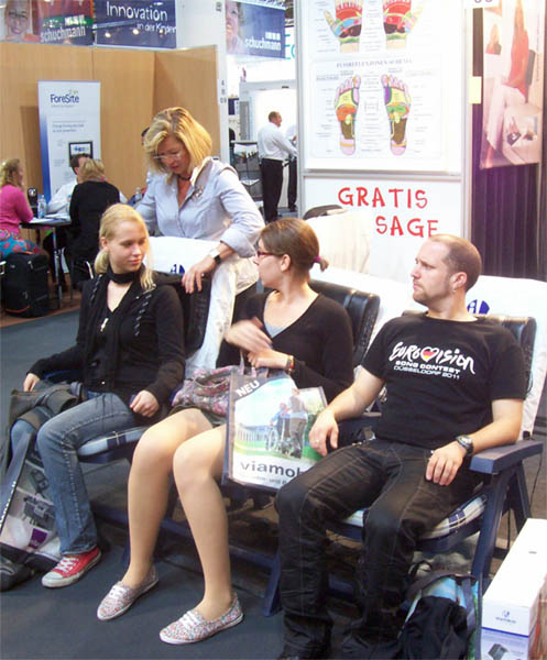 Wer glaubt, Messen seien etwas für langweilige Spießer, der war wohl noch nicht auf der jährlich stattfindenden Messe REHACARE in Düsseldorf. Bei uns, den Berufspraktikanten der Fachschule für Heilerziehungspflege, stand am 22.09.2011 der fast schon traditionsgemäße Besuch eben dieser auf dem Programm. Wir wählten die Anreise mit dem Zug, welche sich aufgrund der guten Anbindung des Messegeländes empfiehlt und sogar im Tagesticket enthalten ist. Vor Ort trafen wir uns mit Herrn Mäteling (Denn -schade eigentlich- was wäre eine Schulveranstaltung ohne Lehrer?! 😉 ) und auf ging’s ins Getümmel. Wir durchkämmten die vielen Hallen in Kleingruppen und kamen, um das Ausmaß zu verdeutlichen, ungelogen, nirgendwo zweimal vorbei.