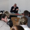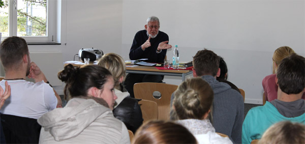 Am 22. Jahrestag der Öffnung der Mauer besuchte Herr Pester uns, die drei Klassen der AH/13, und erzählte aus seinem Leben. Mit Witz und einer ehrlichen, sympathischen Art, führte er uns in die damalige Zeit. Er erklärte, wie es zum „Eisernen Vorhang“ kam und wie sich der Sozialismus in Ostdeutschland verbreitete. Seine Geschichte erzählte er aus Sicht eines einfachen Mannes in der Zeit des „Kalten Krieges“. Schmunzelnd berichtetet er von den typischen Schwierigkeiten der damaligen Zeit, einem Mädchen näher zu kommen, und als er es dann geschafft hatte, passierte es: Nachdem die beiden mit anfänglichen Schwierigkeiten nun doch endlich zueinander fanden, wurde das junge Glück auf eine harte Probe gestellt. Mit 17 Jahren verließ er mit seinen Eltern 1958 Ostdeutschland und flüchtete in den Westen. Ein Brief vor der Flucht war somit der erste von vielen, in einer 13 Jahre dauernden Zusammenkunft ihrer persönlichen Wiedervereinigung.