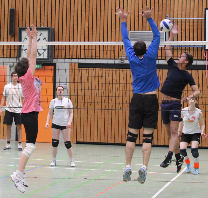 Selten war es bei den schulinternen Volleyballturnieren so spannend: Beide Finalspiele, auch das in der Trostrunde, wurden erst im dritten Satz entschieden. So siegte die AH/13S2 knapp über die FH/12S2 und in der Trostrunde die FH/12S3 über die AH/13S1. Klarer war da schon der Spielausgang im Match des „Schüler-Dream-Teams“ gegen die Lehrerauswahl. Hier hatten die Schüler mit 65:36 die Nase klar vorne.