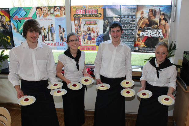 Und dann, am Montag, den 19. März 2012, war es endlich soweit: Gerollte Schnitzel, Cannelloni, Enchiladas, Biskuitrollen und viele andere Leckereien füllten die Anrichten und der professionell „aus dem Ei gepellte“ Service stand hinter der Theke bereit, um den zahlreich erschienen Premierengästen jeden Wunsch von den Augen abzulesen!