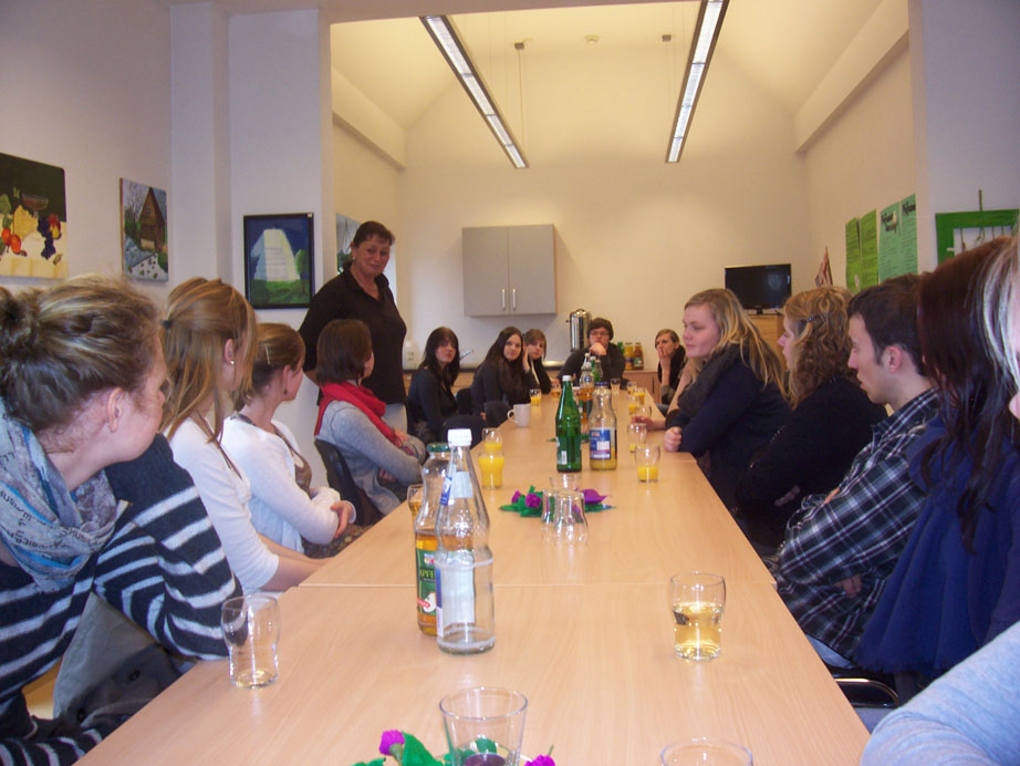 Nachdem wir alle Platz genommen hatten, begannen wir unsere ersten Fragen an Frau Brünken zu stellen. Da wir schon einiges an Vorwissen zur Hospizarbeit aus vorheriger schulischer Erarbeitung besaßen, interessierte uns zuerst einmal wie genau dieses konkrete Hospiz aufgebaut ist und welche Personen in diesem Haus überhaupt arbeiten. Die Antworten auf unsere Fragen waren sehr vielfältig.