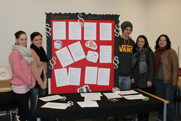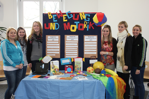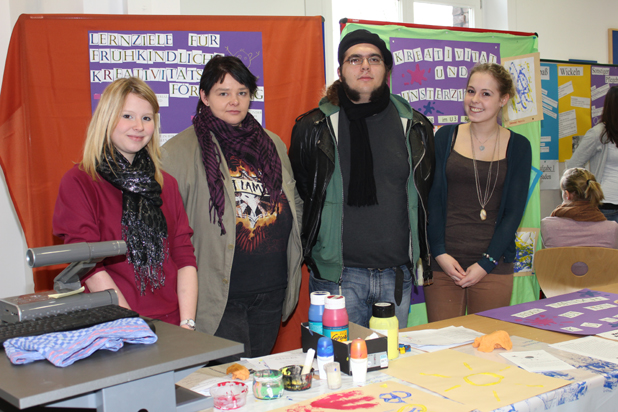 Bei einem „Marktrundgang“ konnten sich dann die Besucher (Studierende der FSP, Schülerinnen und Schüler der SH und andere Interessierte) informieren. Dieses geschah auf unterschiedliche Art und Weise: Einerseits mussten Fragen beantwortet werden, z. B. zu den rechtlichen Grundlagen bei der Arbeit mit Kindern unter drei Jahren. Andererseits konnten die Besucher themenbezogene Rätsel lösen.