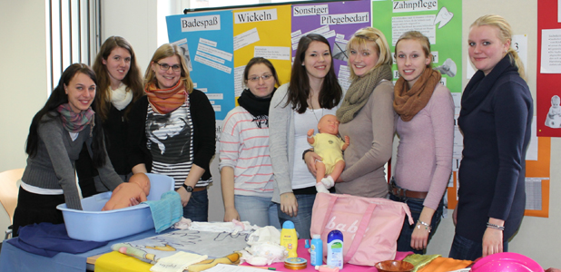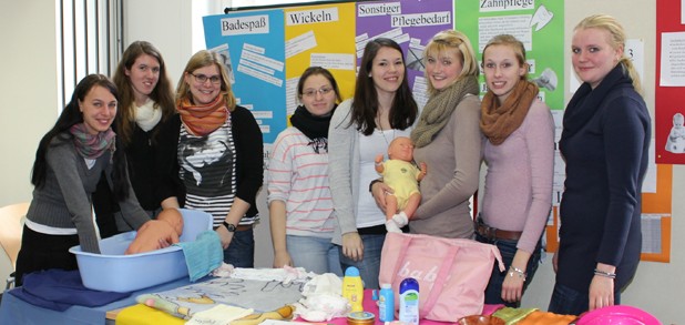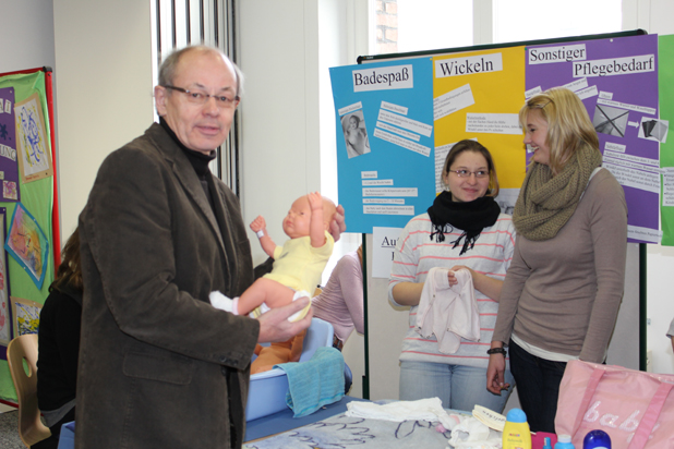 Neben dem lerntheoretischen Teil sorgten auch praktische Aktionen für Begeisterung. Kreativität musste entwickelt werden beim Malen eines Bildes mit Deorollern und Vorsicht war geboten beim Wickeln und Baden eines Babies.
