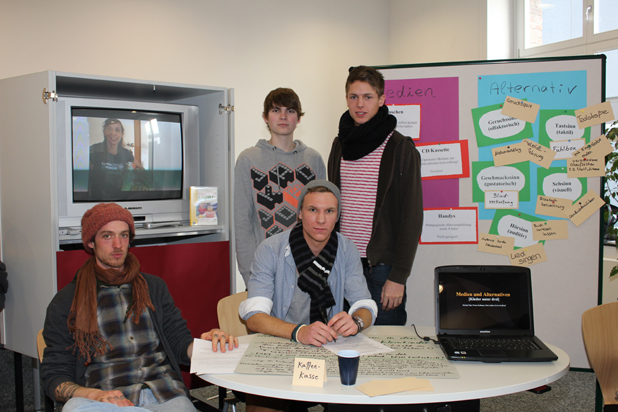 Für besonders Interessierte und um erhaltenes Wissen zu festigen oder zu erweitern, gab es Handouts und Flyer aller Gruppen. Diese fanden zahlreiche Abnehmer! Kopierkosten-technisch ein schwarzer Tag für die Liebfrauenschule! Um es in Peters Worte zu fassen: „Alter, wir müssen schon wieder kopieren!“ Doch gelohnt hat es sich definitiv.