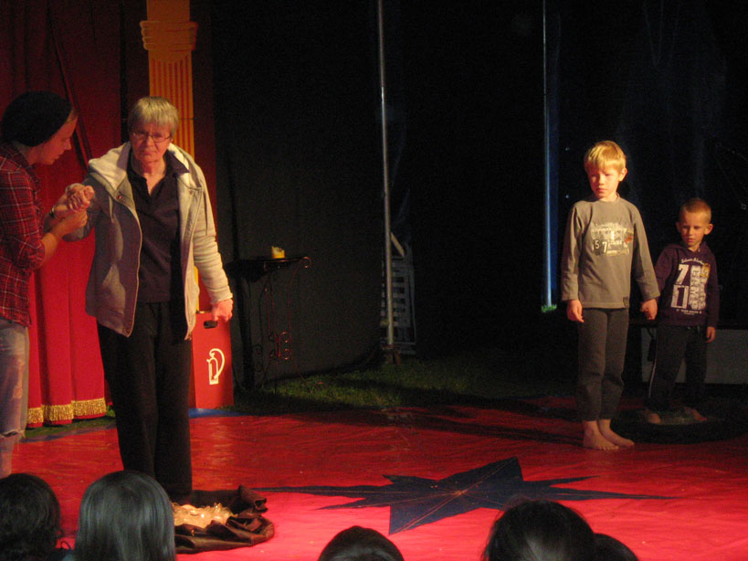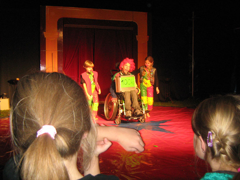 Mit dem nötigen Lampenfieber war es dann am Wochenende endlich so weit. Natürlich lief nicht alles perfekt, aber das war ja auch nicht Sinn der Sache und nach zwei Tagen Proben unmöglich zu erreichen. Viel wichtiger war es, dass die Grenzen und Ängste überwunden wurden, dass das Selbstbewusstsein gestärkt und motorische Talente geweckt wurden und natürlich, dass alle Beteiligten jede Menge Spaß hatten.