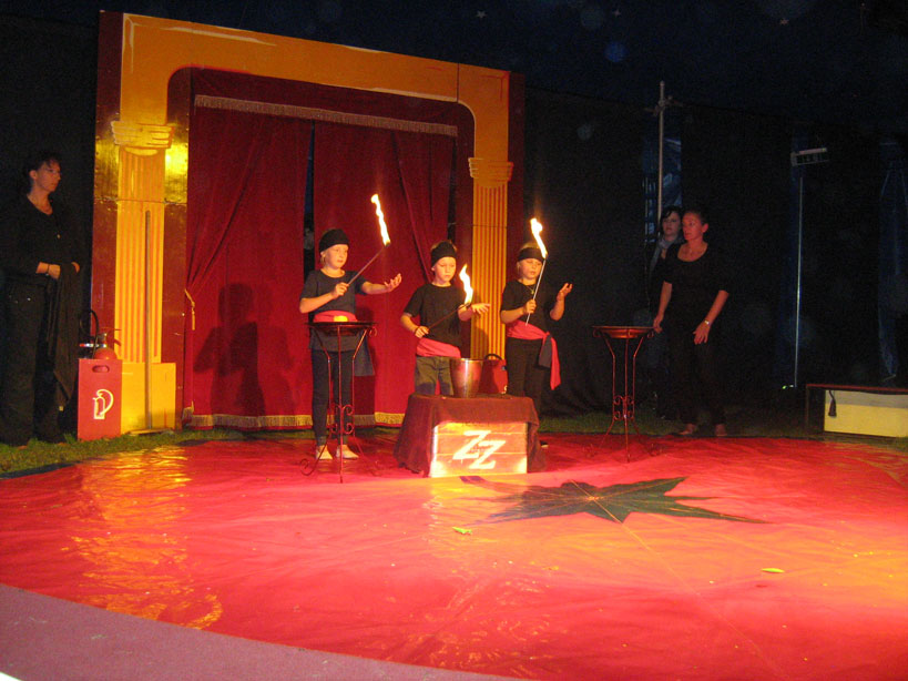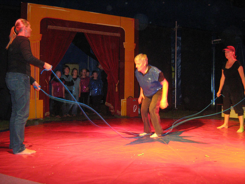 Doch auch die anderen Gruppen wollen wir nicht unerwähnt lassen. Es gab noch die Poischwinger, die Akrobaten, die Rola-Akrobaten, die Leiterartisten, die Zauberer, die Fakire, die Trampolinakrobaten und natürlich das, was in keinem guten Zirkus fehlen darf: die Clowns. Sie brachten alle mit einer sehr eigenwilligen Version des Spiels „Die Reise nach Jerusalem“ und vielen weiteren lustigen Aktionen zum Lachen.