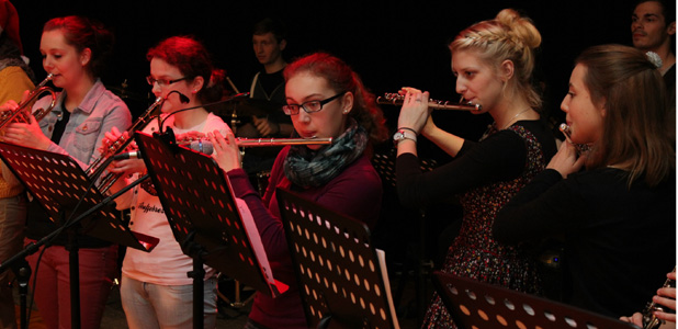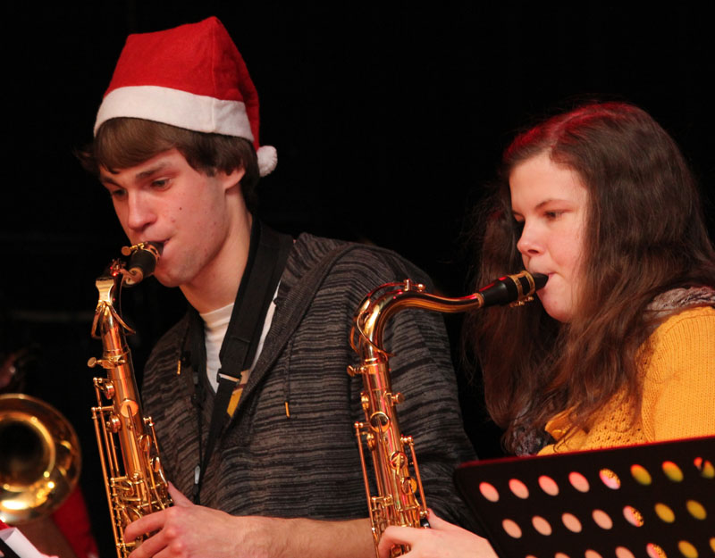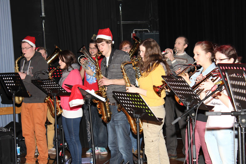 Die Mischung macht’s! Man nehme eine große Gruppe talentierter Instrumentalisten und eine Schar von stimmlich sehr begabten Sängerinnen, füge dann Hunderte von Schülerinnen und Schülern in Ferienlaune hinzu und garniere dieses mit swingenden Erziehern und Lehrern und vergesse dabei nicht Herrn Baumgärtner: Heraus kommt das traditionelle, aber keinesfalls verstaubte Adventssingen unserer Liebfrauenschule.