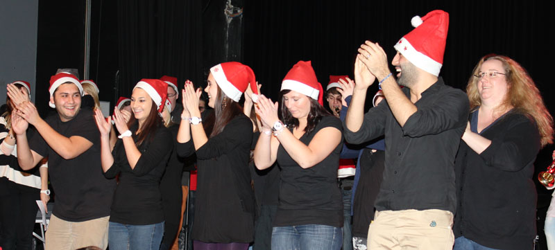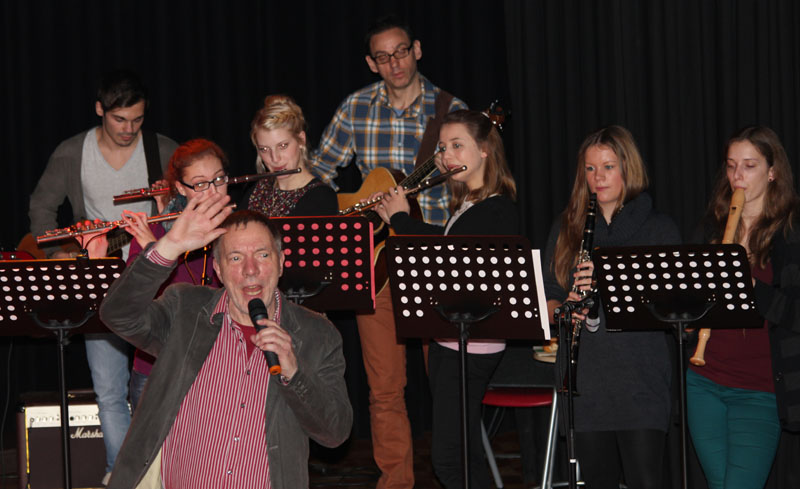 Wer nicht glaubt, dass dabei jede Menge Spaß und Vorweihnachtsfreude entsteht, dem sei empfohlen, am letzten Tag vor den Weihnachtsferien in unsere Aula zu kommen. Herrn Baumgärtner war es jedenfalls nun zum „-zigsten Mal“ gelungen, ein überaus kurzweiliges, belustigendes Musikprogramm auf die Beine zu stellen und dabei die Schülerinnen und Schüler locker-flockig von der ersten bis zur letzten Minute zum Mitmachen zu motivieren. Glückwunsch! Wohl nur er alleine wird ermessen können, wieviel Mühen nötig sind, um dieses perfekte Bühnenprogramm mit Unterstützung vieler engagierter Schülerinnen und Schüler zu realisieren.