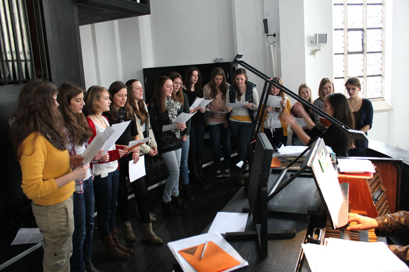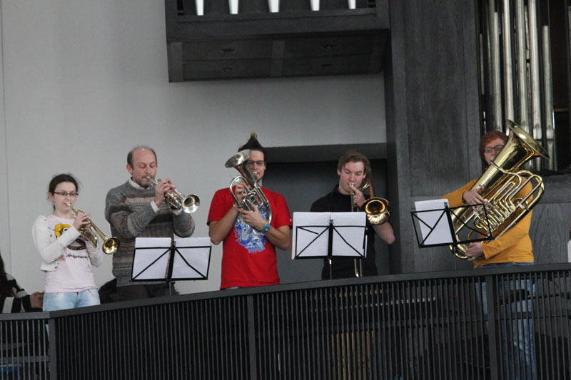 Den Abschluss des letzten Tages vor den Weihnachtsferien bildete eine Eucharistiefeier mit Pfarrer Dördelmann in der Pfarrkirche. Auch hier wurden musikalische Akzente gesetzt: durch die Blechbläser unter der Leitung von Herrn Terhorst und durch den brillanten Chor, den Farah Otten aus der AH/12S1 mit sicherer Hand durch das anspruchsvolle Liedgut dirigierte.