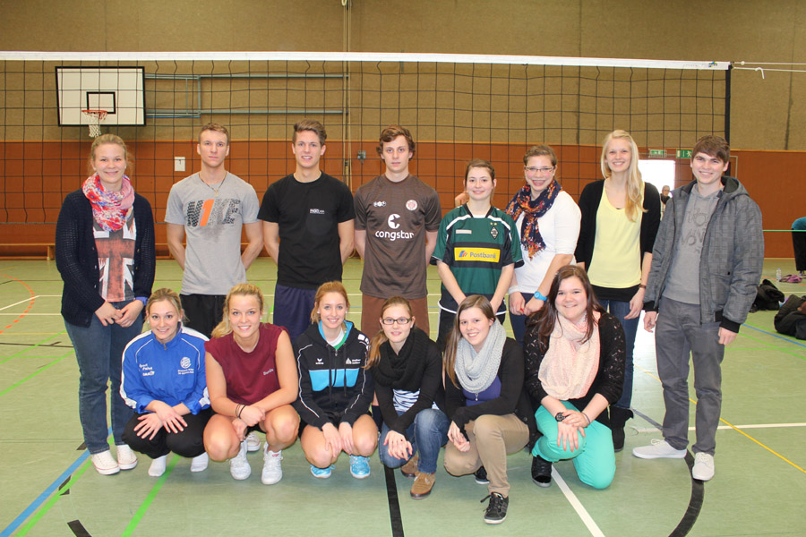 Erstmals in der langen Geschichte der schulinternen Volleyballturniere, die traditionell in der letzten Woche vor der Osterferien stattfinden, standen zwei Erzieherklassen im Endspiel. Das konnte schließlich die FSP/U2 (Foto oben) erst im Tie-Break gegen die FSP/O2 gewinnen. Im kleinen Finale um Platz 3 besiegte die AH/13S1 die FH/12E.