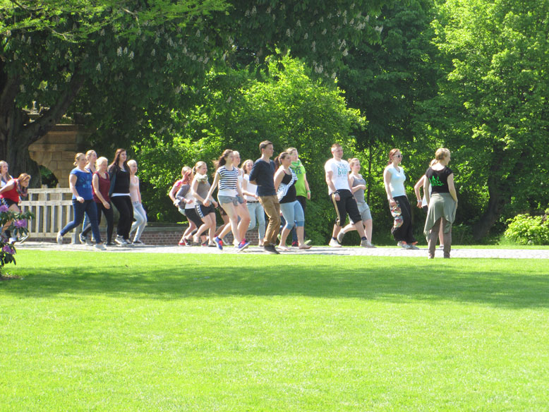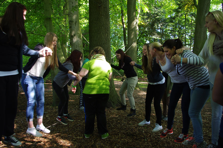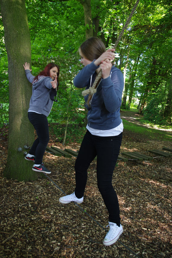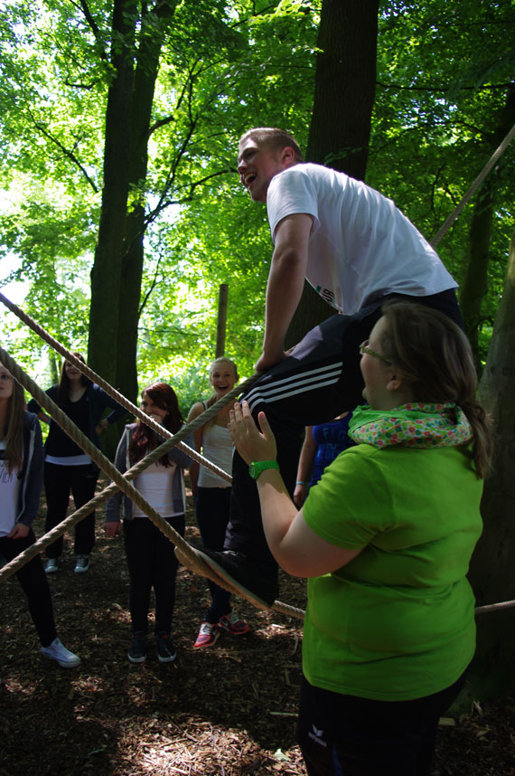 Der zweite Tag stand komplett unter dem Motto „Klassengemeinschaft stärken“, da wir uns alle noch nicht so gut kannten. Erlebnispädagogische Spiele, wie zum Beispiel im Tiefseilgarten im Wald oder andere bewegungsintensive Spiele („Wo ist mein Huhn?“), machten den Tag noch ereignisreicher. Am Abend traf sich unsere ganze Klasse dann im Biergarten an der Burg, um den letzten Abend gemütlich ausklingen zu lassen. Am letzten Tag folgte nach dem Frühstück noch eine Einheit und dann ging es mit dem Bus auch schon wieder Richtung Geldern.