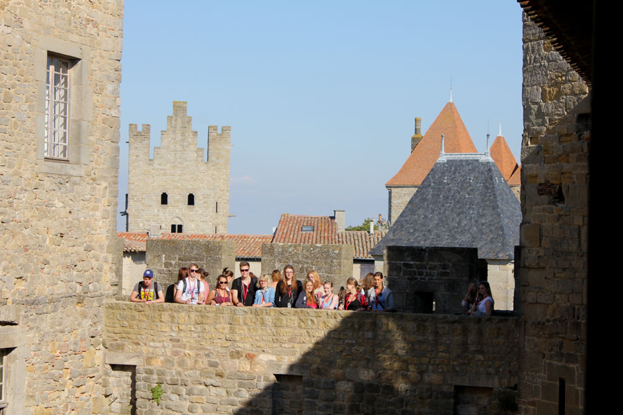 Wir starten erst im sehr frühern Nachmittag zu unserer längsten Bustour. Die mittelalterliche Festungsstadt Carcassonne erwartet uns. Unsere Route geht durch klassische Weinanbauregionen und endet an der von zwei immensen Mauern umgebenen historischen Altstadt von Carcassonne, deren bestens erhaltene Festung wir, angereichert mit vielen Infos per Kopfhörer, genau erkunden werden. Zeit wird aber auch sein, um auf eigene Faust durch die engen Gassen zu ziehen und in den vielen Andenkenläden auf Souvenirsuche zu gehen.