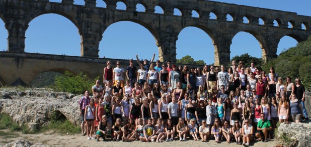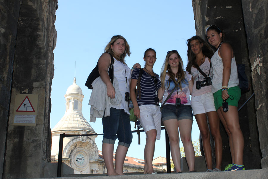Rund 2000 Jahre zurück wird uns der Montag versetzen. Wir wandeln auf den Spuren der Römer! Wir fahren als erstes zum von den Römern in landschaftlich reizvoller Lage erbauten Pont du Gard, einem rund 50m hohen und 275m langen Aquädukt über den Fluss Gard. Vor der historischen Kulisse werden wir auch das Jahrgangstufenfoto machen.