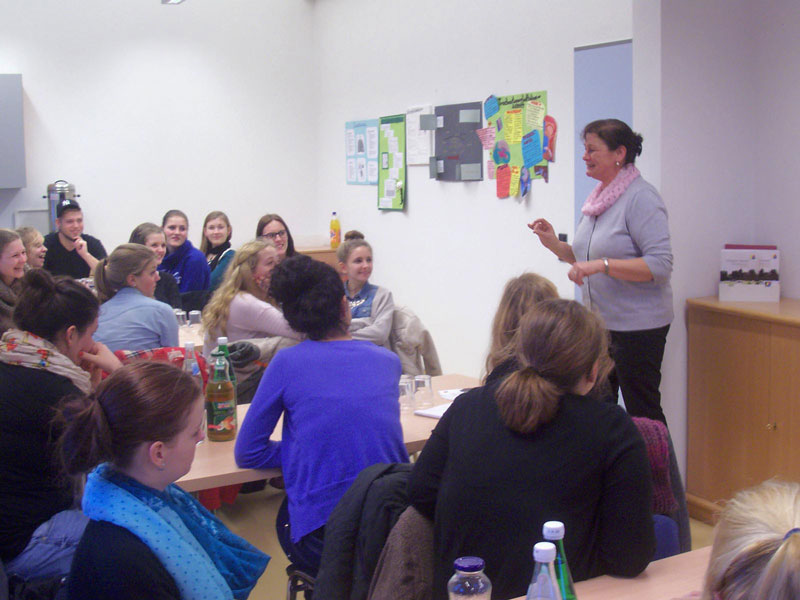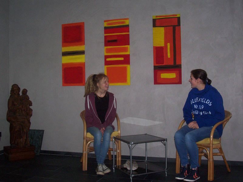 Im Jahr 1997 wurde der Hospiz-Verein Kevelaer e.V. gegründet. Seit dem Jahr 2007 besteht nun das heutige Hospiz-Gebäude in Wetten. Die gelernte Krankenschwester Birgitt Brünken ist die Leiterin des Hospizes. Sie begrüßte uns freundlich und stand uns für ein ausführliches Gespräch zur Verfügung. Nach dem Gespräch folgte dann ein Rundgang durch die hellen und freundlichen Räumlichkeiten des Hospizes, die wir – mit unseren Erfahrungen aus Krankenhauspraktika – gar nicht so schön und wohnlich erwartet hatten.