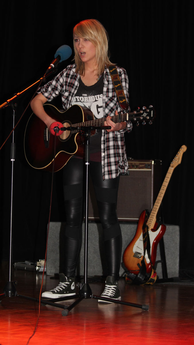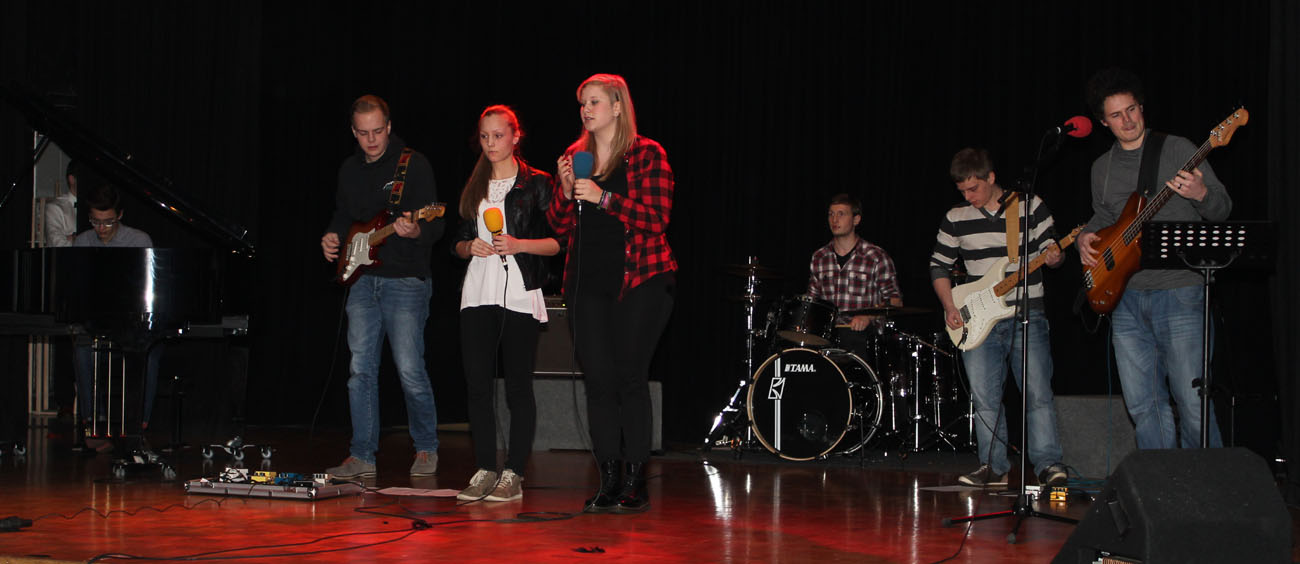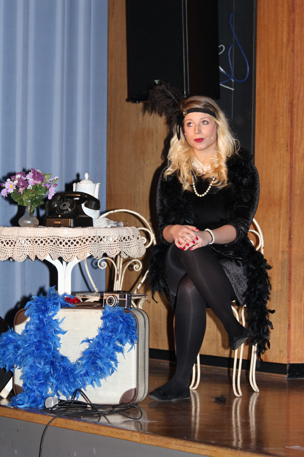 Stilvoll im Look der 20er Jahre eröffneten Svenja Sandmann und Maurice Ruelfs die Gala, die im ersten Teil vornehmlich moderne Musikstücke beinhaltete. Während die siebenköpfige Band Daily Reality noch die ganze Bühne ausfüllte und durch perfekt sitzende Beats besonders mit englischsprachigen Cover-Songs einheizte (Pink und Nickelback ließen grüßen), stand Maren Bald ganz alleine auf der großen Bühne. Für ihre Songs von OneRepublic, Imagine Dragons und Rihanna, die sie mit klarer Stimme sehr souverän vortrug und die sie mit ihrer vorwiegend rhythmisch geschlagenen Gitarre melodisch begleitete, war ihr ein langer Applaus sicher.